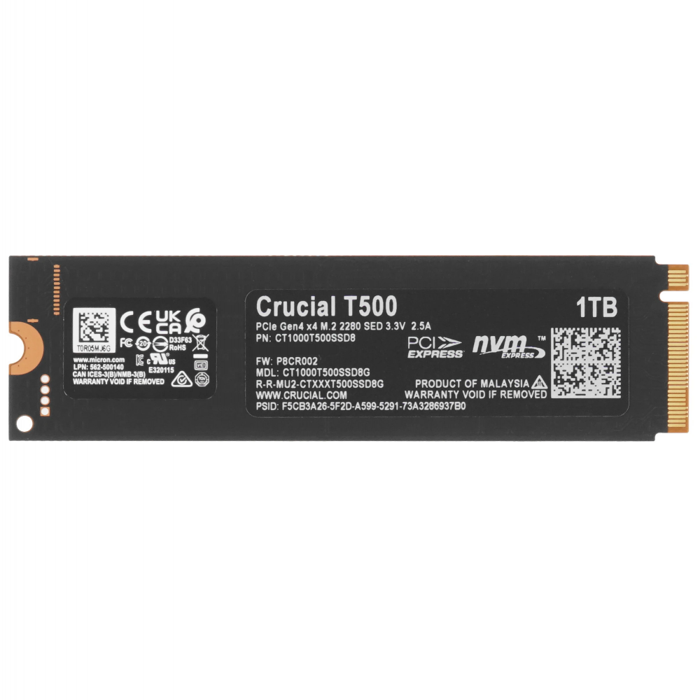 Твердотельный накопитель Crucial T500 с форм-фактором M.2 2280 и объемом 1 ТБ предлагает отличное решение для хранения данных, сочетая большую емкость и высокую скорость работы. Используя 3D NAND память, этот SSD обеспечивает впечатляющие скорости передачи данных: до 7300 МБ/с при чтении и до 6800 МБ/с при записи. Эти характеристики делают T500 отличным выбором для ускорения загрузки операционной системы, приложений и работы с большими файлами.