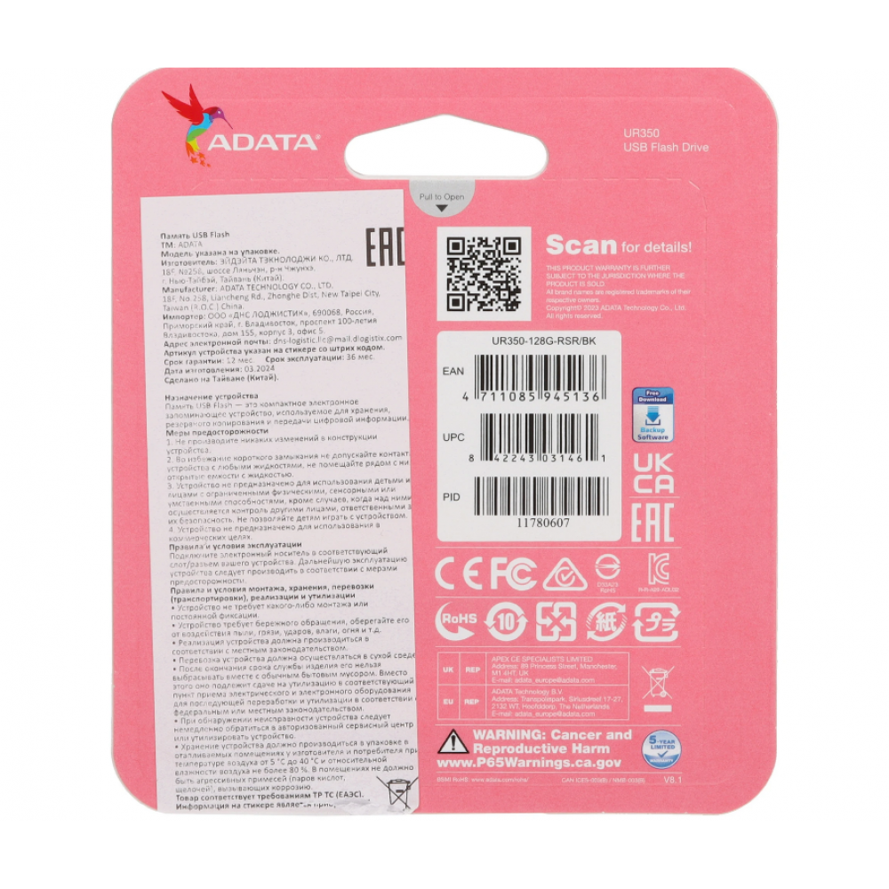 Флэш-накопитель, который сверкает в ваших руках, как произведение искусства. Простой обтекаемый дизайн UR350 привлекателен и стильный. Он изготовлен из металлического материала, отполированного до никелевого тона, который источает качество. Детали, обеспечиваемые дополнительными материалами, еще больше подчеркивают сочетание моды и технологий. Цельный дизайн без колпачка оставляет потерянные колпачки в прошлом. С UR350 хранение данных больше не является монотонным, а вместо этого становится изюминкой вашего рабочего процесса.
