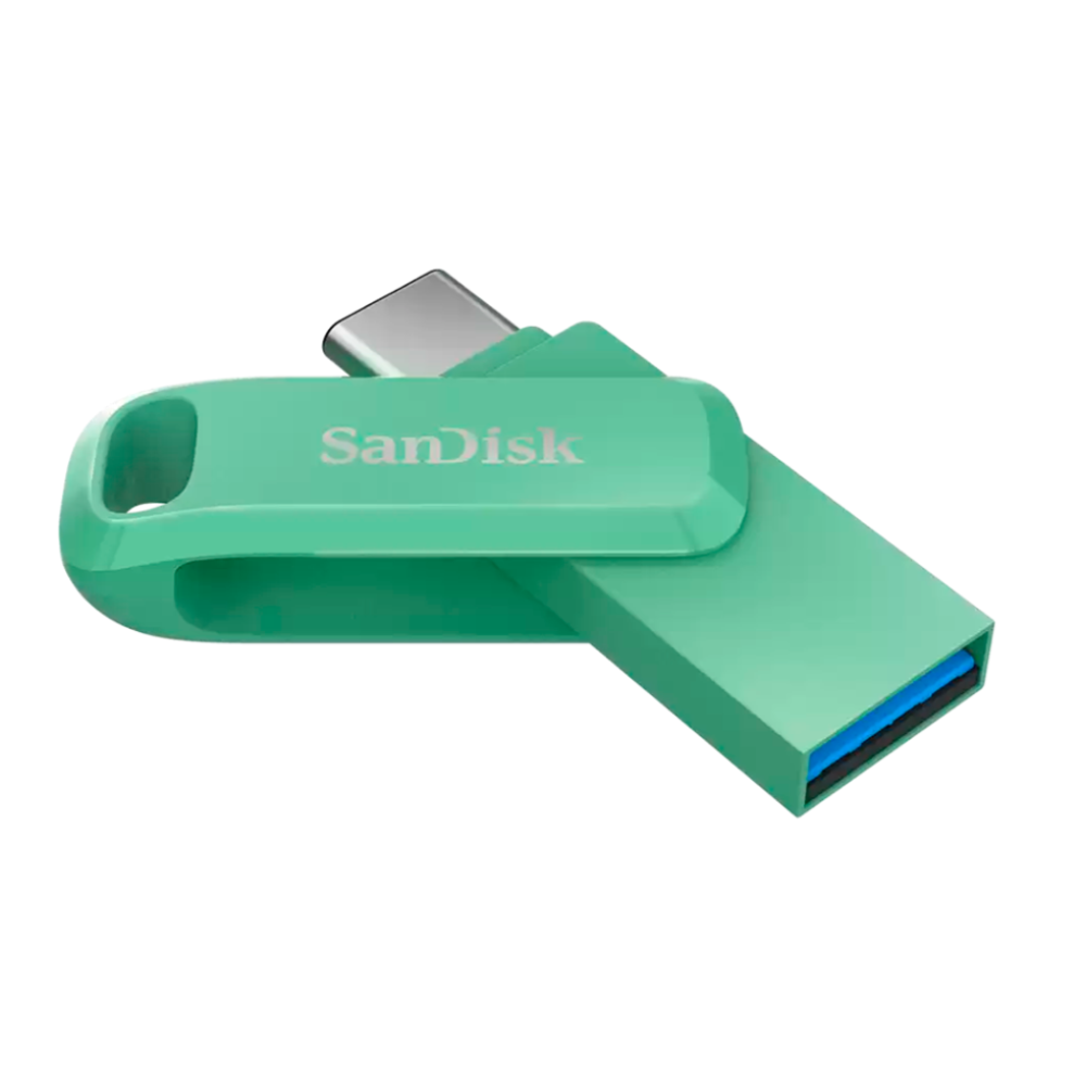 SanDisk Ultra Dual Drive Go — стильный накопитель с двумя разъёмами: USB Type-C и USB Type-A. Цвет — Absinthe Green (мятно-зелёный). Скорость чтения — до 400 МБ/с, объём — 128 ГБ. Идеален для быстрой передачи данных между смартфоном, планшетом и ПК. Поддерживает OTG и приложение SanDisk Memory Zone.
