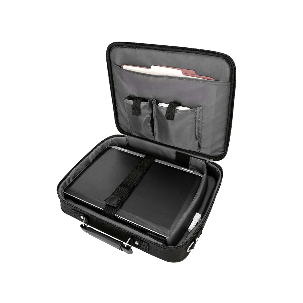 Благодаря множеству карманов и отсеков, сумка для ноутбука 15.6" TARGUS CN01 отличается хорошей вместимостью. Большой внутренний карман предназначен для хранения бумаг и документов. Для зарядного блока, мыши и других аксессуаров есть 2 внутренних отделения на липучке. Надежный внешний карман идеально подходит для хранения различных предметов, к которым необходим быстрый и удобный доступ. Наличие специальных петель на задней поверхности сумки позволяет закрепить ее на чемодан во время путешествия.