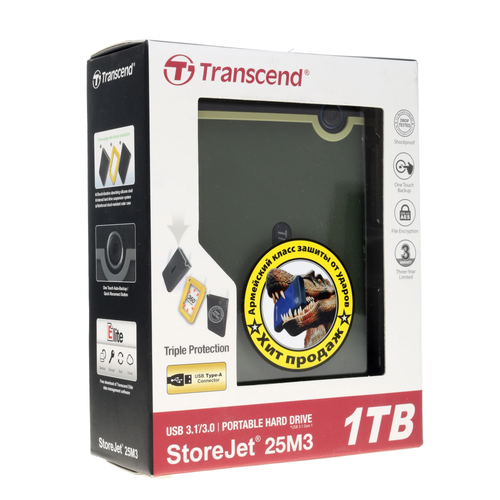 Внешний HDD Transcend StoreJet 25M3G (TS1TSJ25M3G) – прочный и долговечный аксессуар, который эффективно защитит содержимое от негативных внешних воздействий вроде пыли и влаги, а также от механических повреждений, ведь он заключен в корпус из обрезиненного пластика с амортизирующими свойствами. На 1 ТБ объема такого диска вы сможете без проблем хранить весь архив нужных вам данных, которые вам важно иметь всегда под рукой. Портативная конструкция HDD Transcend StoreJet 25M3G (TS1TSJ25M3G) делает его достаточно мобильным и удобным для использования устройством.