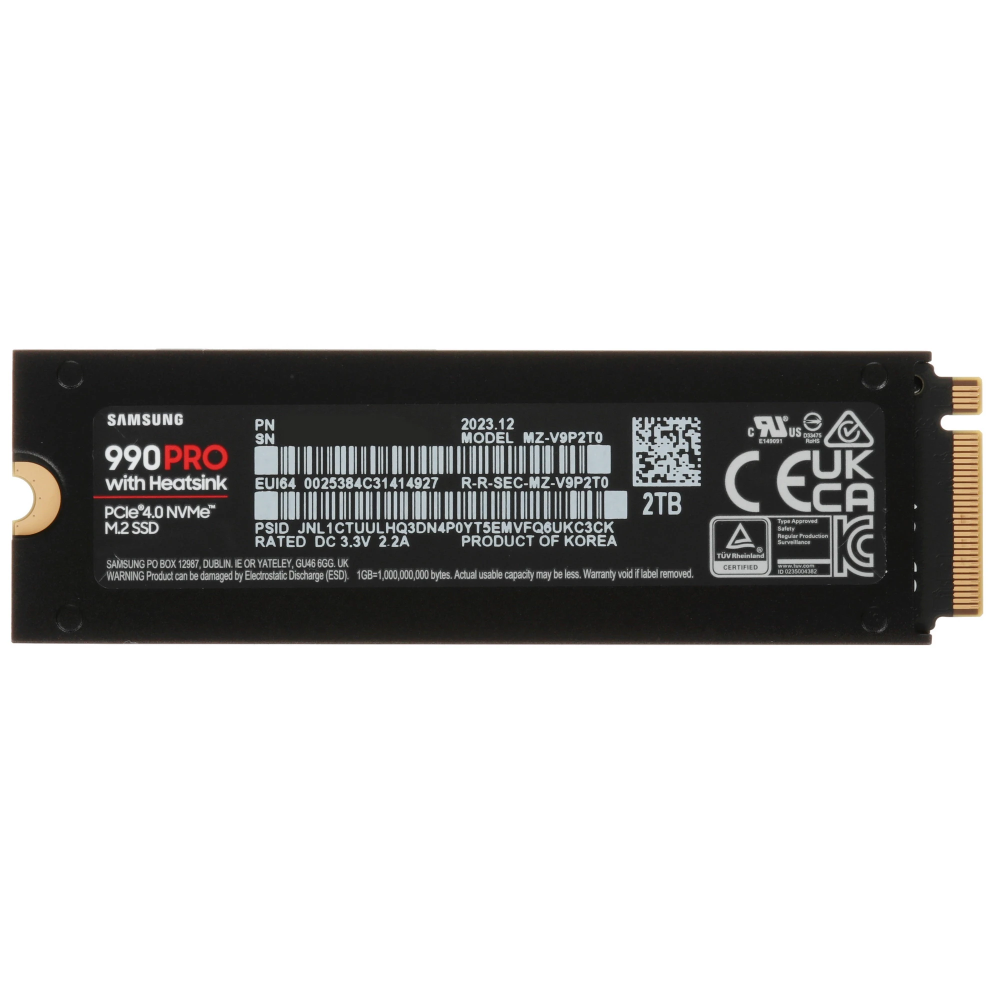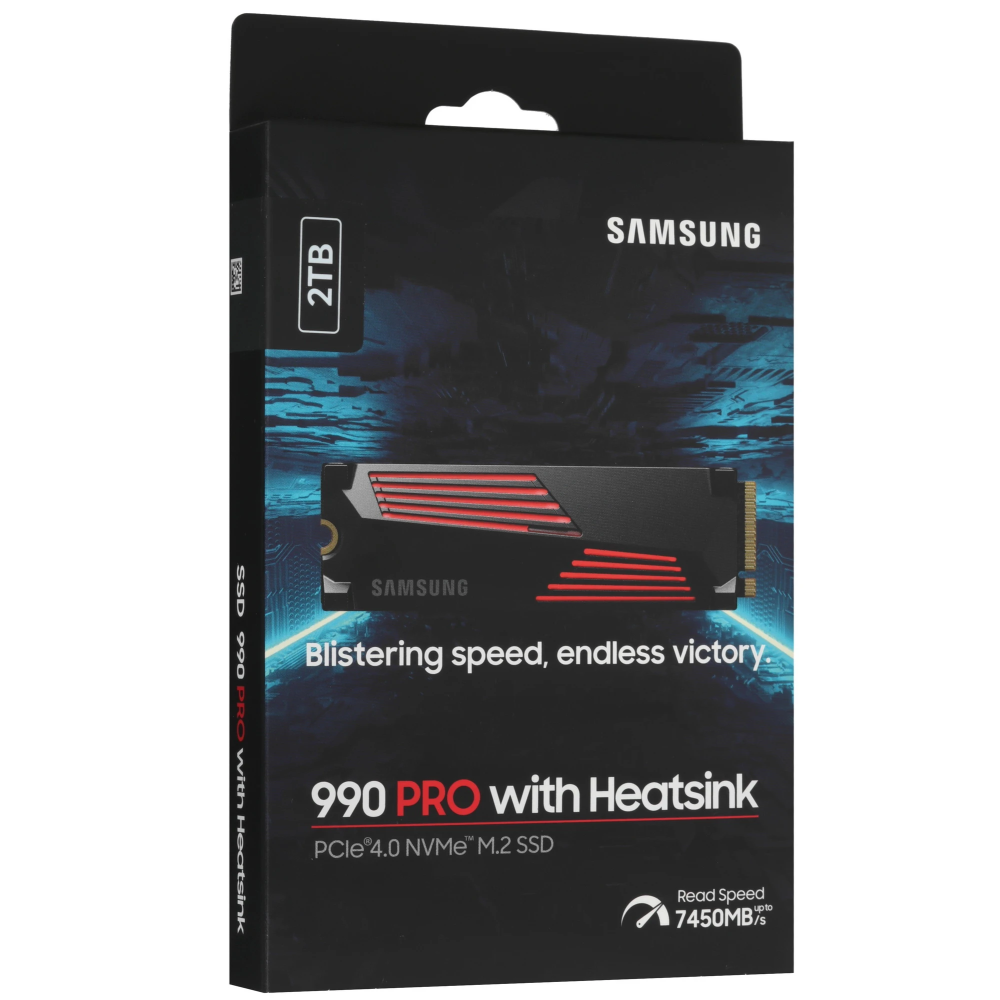 SSD M.2 накопитель Samsung 990 PRO [MZ-V9P2T0CW] ориентирован на оснащение мощных игровых компьютеров и консолей PlayStation 5. Устройство с объемом 2000 ГБ использует для обмена данными высокоскоростной интерфейс PCI-E 4.0 x4. Модель соответствует самому распространенному форм-фактору – 2280. Накопитель совместим почти с любыми материнскими платами стационарных ПК и многими ноутбуками. Устройство оснащено радиатором и поддерживает интеллектуальную терморегуляцию. Поддержание безопасной температуры гарантирует стабильность быстродействия SSD.