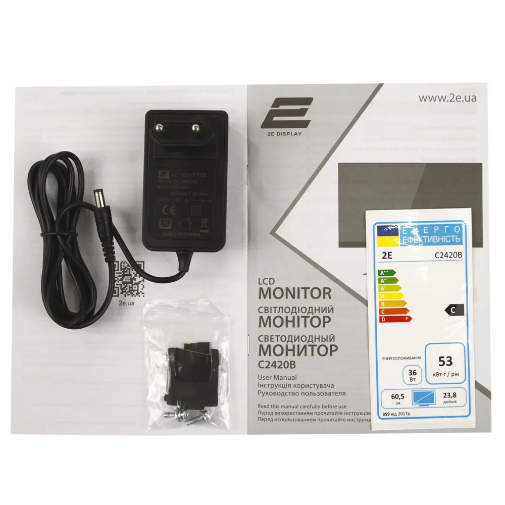 2E C2420B – монитор с хорошими характеристиками по привлекательной цене, оснащенный 23,8-дюймовой IPS-матрицей с разрешением 1920 × 1080 и соотношением сторон 16:9.