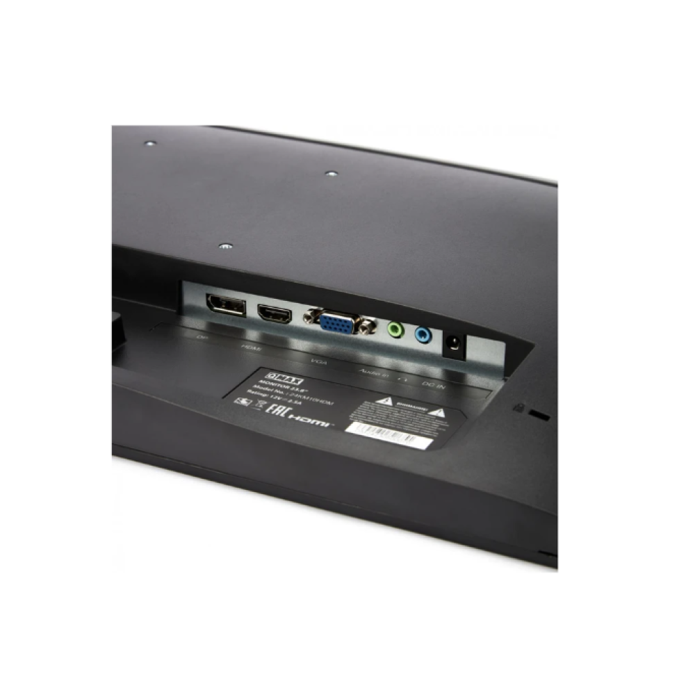 Монитор оснащён встроенными динамиками и поддерживает подключение через HDMI, VGA и DisplayPort, а также имеет аудиоразъём 3.5 мм. Крепление VESA 100×100 позволяет легко установить его на кронштейн.