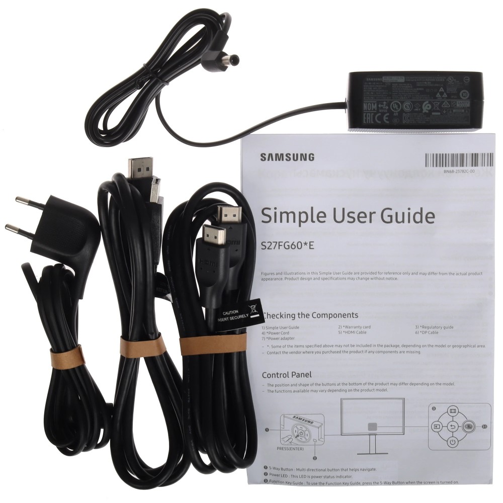 адаптер питания, документация, кабель DisplayPort - DisplayPort, кабель HDMI - HDMI