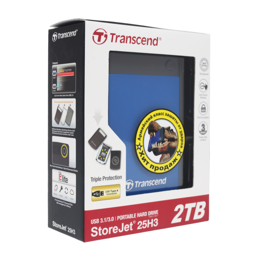 Внешний HDD Transcend StoreJet 25H3 [TS2TSJ25H3B] – это эффективная защита содержимого, надежность, долгий срок службы и быстродействие, он выдерживает многочисленные циклы записи данных, экономит место на жестком диске вашего ПК, за счет чего увеличивается производительность последнего.