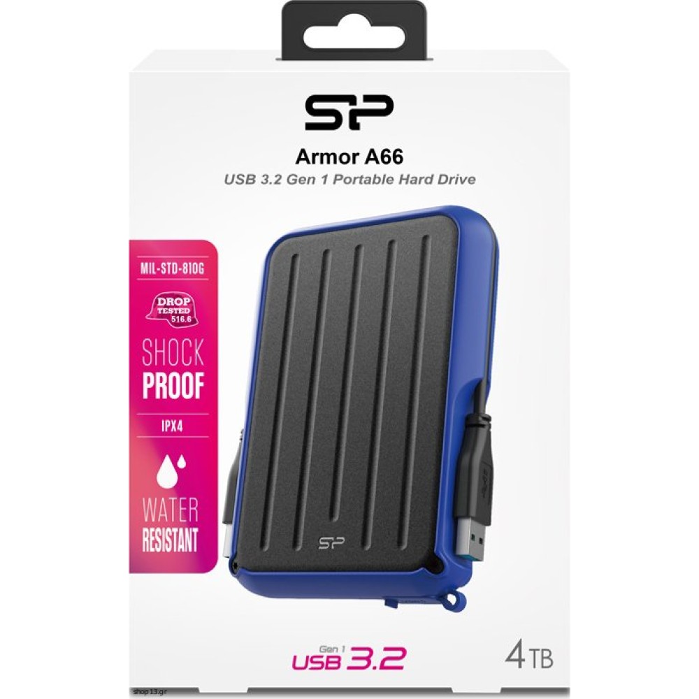 Внешний HDD Silicon Power Armor A66 [SP040TBPHD66LS3B] выполнен в защищенном корпусе по стандарту IPX4, поэтому устойчив к различным неблагоприятным воздействиям в процессе активной эксплуатации. Резиновый мягкий бампер поглощает удар при падениях и помогает сохранить целостность накопителя. HDD Silicon Power Armor A66 обладает емкостью 4 ТБ, обеспечивая хранение большого количества контента. Интерфейс USB 3.2 Gen 1 обеспечивает высокую скорость передачи данных и широкую совместимость с различными устройствами. Кабель USB удобно фиксируется на боковой части корпуса с помощью специальных пазов.