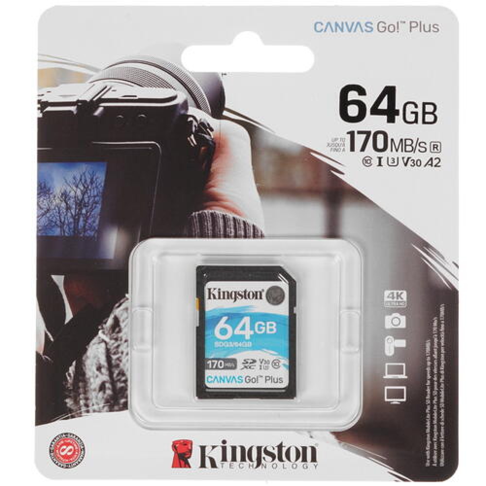 Карта памяти Kingston Canvas Go! Plus SDXC 64 ГБ [SDG3/64GB] предназначена для применения в фотоаппаратах и видеокамерах. Благодаря высокопроизводительным характеристикам карта памяти повысит эффективность и ускорит ваш рабочий процесс. Максимальная скорость при передаче данных составляет 170 Мб/с.