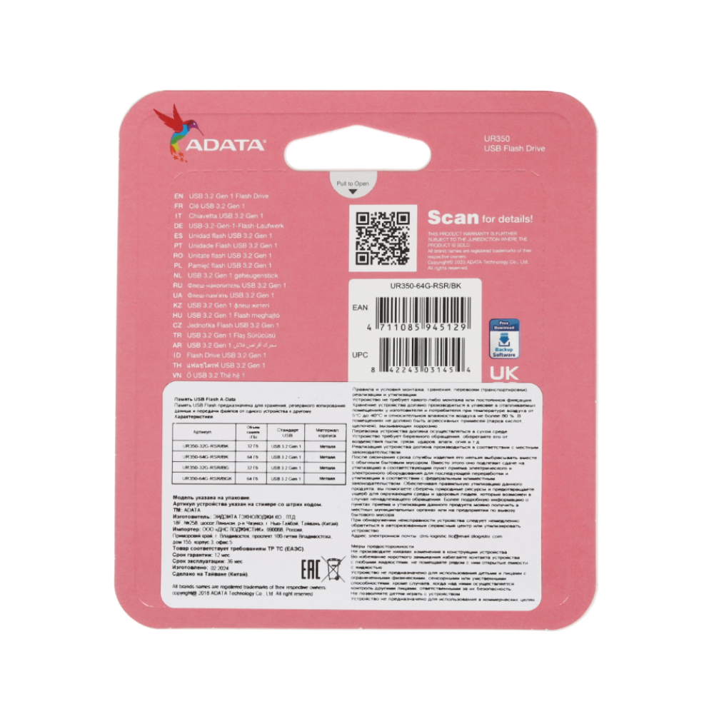 UR350 оснащен интерфейсом передачи USB 3.2 Gen1 с пропускной способностью 5 Гбит/с. Он подключается по принципу plug-and-play и может быстро считывать и записывать файлы как большого, так и малого размера. UR350 также обратно совместим с устройствами USB 2.0.
