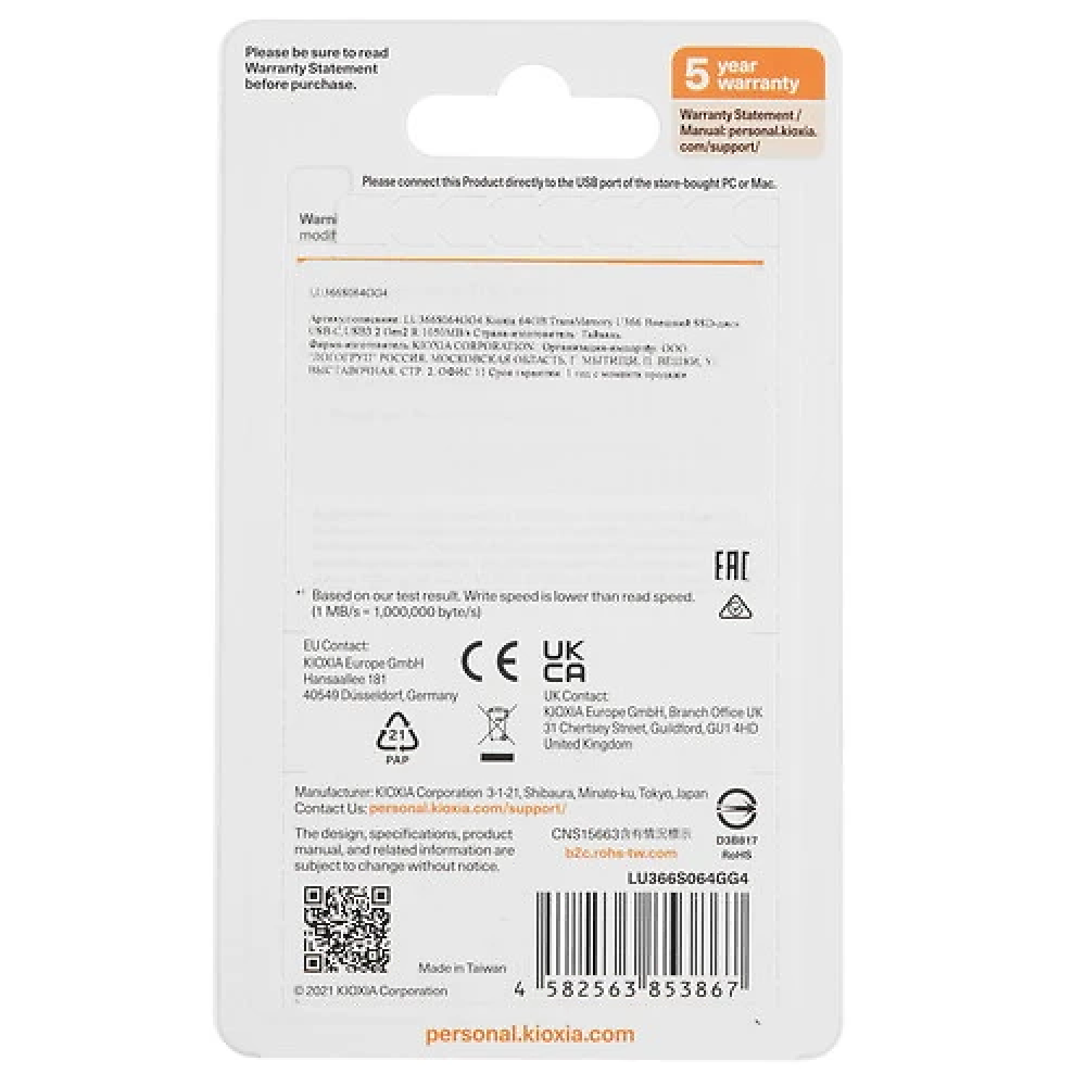 Память USB Flash 64 ГБ KIOXIA U366 [LU366S064GG4]6 используется для перемещения и резервного копирования информации. Интерфейс подключения устройства – USB Type-A. Объем модели – 64 ГБ. Металлический корпус памяти USB Flash 64 ГБ KIOXIA U366 [LU366S064GG4] имеет монолитную конструкцию. Флеш-накопитель соответствует требованиям стандарта USB 3.2 Gen 1. Максимальная скорость чтения – 100 МБ/с.