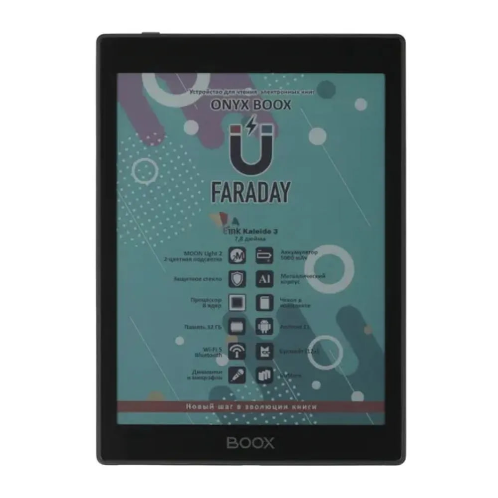 Электронная книга ONYX BOOX Фарадей 2 в черном цвете – это современное устройство для комфортного чтения, оснащенное 7,8-дюймовым сенсорным экраном E-Ink Carta Plus с высоким разрешением 1872×1404 пикселей и плотностью 300 ppi, что обеспечивает четкое и контрастное отображение текста, максимально приближенное к бумажной странице. Поддержка технологии MOON Light 2 позволяет регулировать яркость и цветовую температуру подсветки, обеспечивая удобство чтения в любых условиях освещения. Устройство работает под управлением операционной системы Android, что дает возможность установки различных приложений для чтения и работы с документами. Фарадей 2 оснащен модулем Wi-Fi для доступа к интернету и обновлениям, а также поддерживает Bluetooth для подключения беспроводных наушников и аудиоустройств, благодаря чему можно слушать аудиокниги и музыку. Встроенной памяти достаточно для хранения большой библиотеки, при этом предусмотрен слот для карт microSD, позволяющий расширить пространство при необходимости. Устройство отличается стильным минималистичным дизайном в черном корпусе, эргономичной формой и небольшим весом, что делает его удобным для длительного использования дома, в дороге или на учебе.