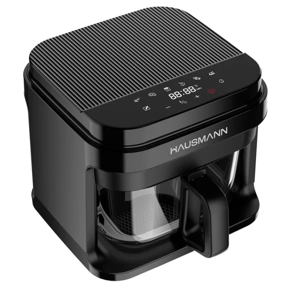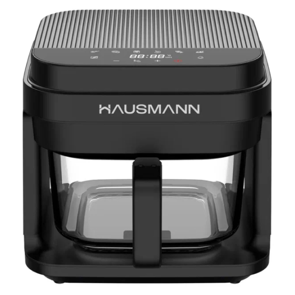Hausmann HAG-8080 — это стильный аэрогриль с чашей объёмом 7,5 литра, мощностью 2000 Вт и 12 автоматическими программами приготовления. Сенсорное управление, функция отложенного старта до 24 часов, режим сушки фруктов (от 40 °C), а также разморозка делают его универсальным помощником на кухне. Подходит для приготовления мяса, рыбы, овощей, выпечки и закусок. Дизайн — чёрный с серебристыми элементами