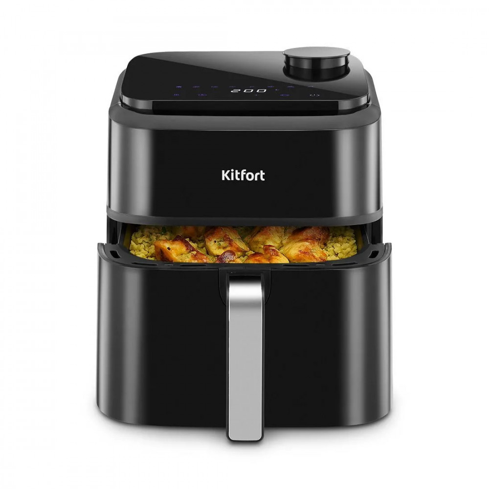 Аэрогриль Kitfort КТ‑8154 — это современный кухонный прибор объёмом 6,5 литра с сенсорным управлением и цифровым дисплеем, который позволяет готовить разнообразные блюда с минимальным количеством масла. Он оснащён мощным нагревателем мощностью 1800 Вт и обеспечивает плавный нагрев в диапазоне от 80 °C до 200 °C. Устройство предлагает восемь автоматических программ для разных типов блюд, таких как картофель фри, овощи, рыба, курица и выпечка. Таймер позволяет установить время приготовления до 60 минут, а уровень шума при работе не превышает примерно 60 дБ.
