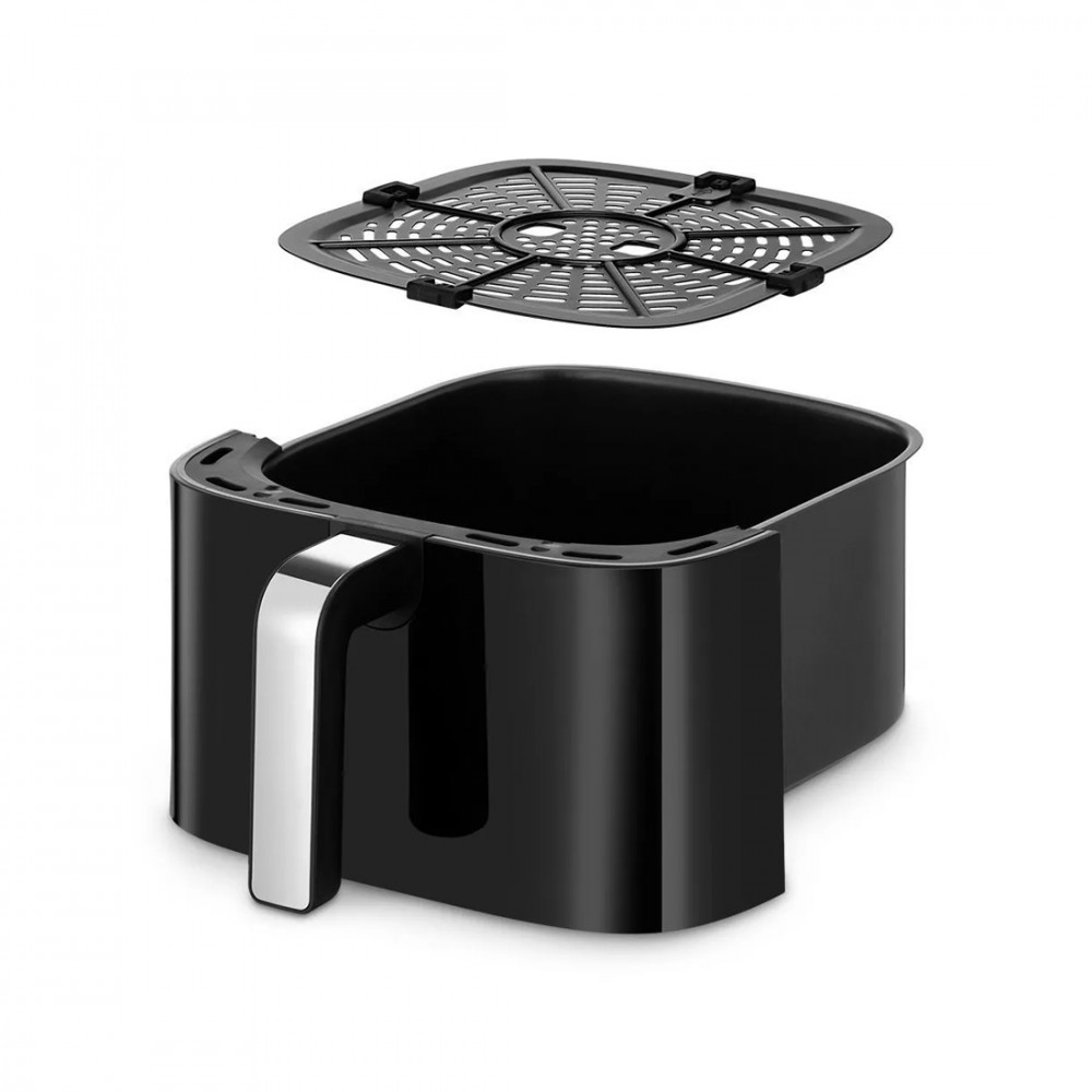 Модель оборудована смотровым окном, которое даёт возможность наблюдать за процессом готовки, а также звуковым сигналом, оповещающим об окончании программы. Корпус изготовлен из пластика и дополнен антипригарным покрытием на корзине и решётке, что упрощает уход за прибором. Аэрогриль поддерживает режимы с паром, что позволяет готовить более нежные и сочные блюда. Он имеет компактные габариты и съёмные части для удобства очистки, что делает его подходящим выбором для использования в повседневной кухне.