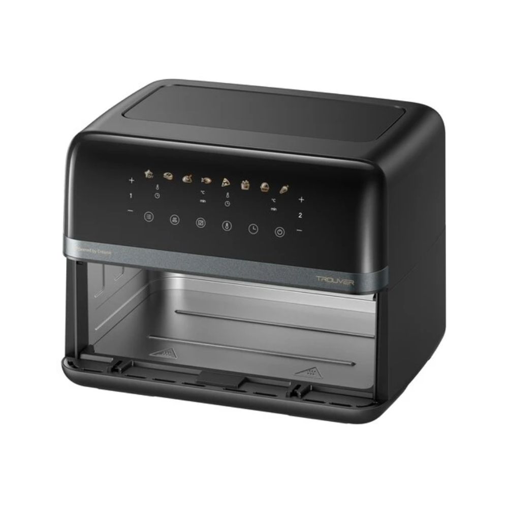 Аэрогриль Trouver AirFryer FD20 Pro Black выполнен в черном пластиковом корпусе с устойчивой к нагреву ручкой, дисплеем и сенсорными кнопками. Смотровое окно позволяет следить за процессом приготовления без риска попадания брызг масла на кожу.