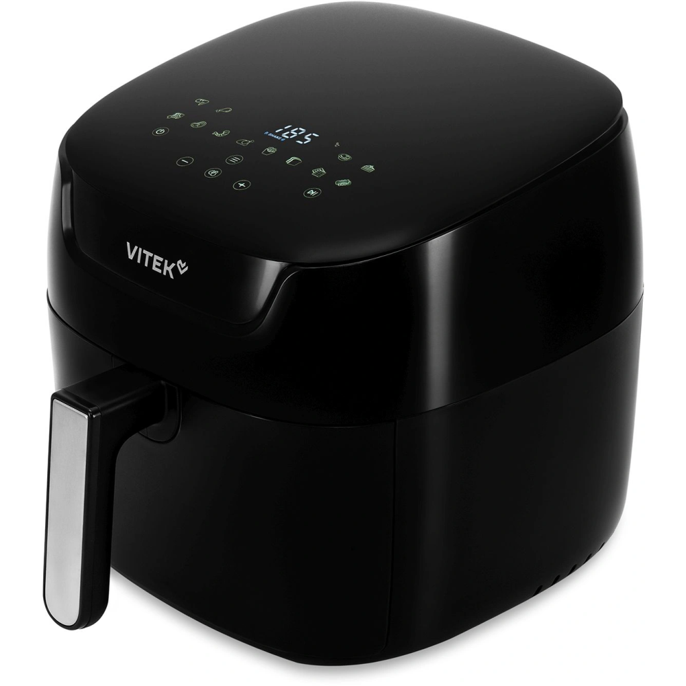 Аэрогриль Vitek VT-AF6001 — стильный чёрный аэрогриль электрический 6 литров, создающий ярко-золотистую корочку без лишнего масла благодаря направленному потоку горячего воздуха.
