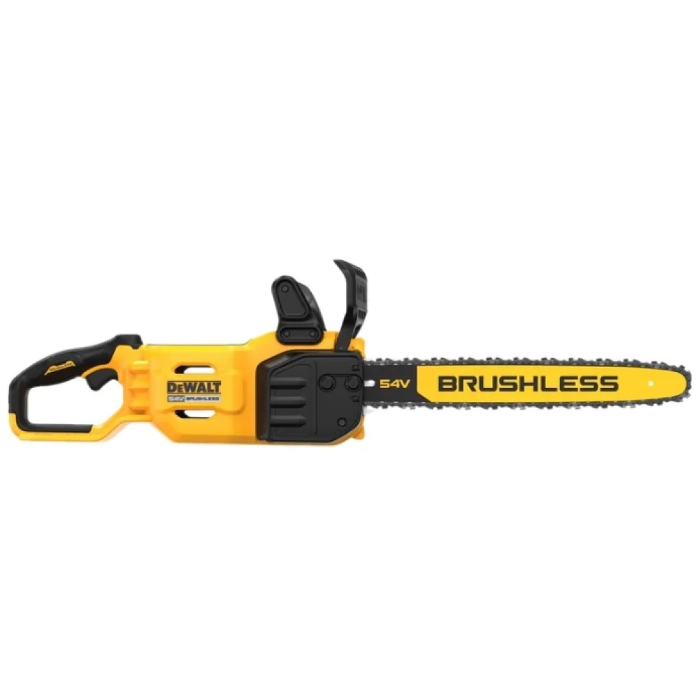 Аккумуляторная электропила DeWALT 54В 45см DCMCS574N-XJ - профессиональный инструмент для валки леса, обрезки сучьев, заготовки дров и пиломатериалов. Бесщеточный двигатель гарантирует высокий КПД и влагозащиту изделия. Аккумуляторная технология обеспечивает тихую работу, отсутствие выхлопных газов, возможность работы в помещении, простоту в обслуживании и отсутствие необходимости приготовления топливной смеси. Основная и дополнительные рукоятки имеют прорезиненное покрытие для надежного удержания агрегата. Передний щиток служит одновременно защитой руки и инерционным тормозом цепи. Зубчатый упор позволяет зафиксировать пилу при распиле, что предотвращает соскальзывание инструмента. Автоматическая подача масла как у бензопилы. Высокая экологичность - отсутствие вредных выбросов. Совместима со всеми аккумуляторами платформы FLEXVOLT 54 В. Визуальный контроль за уровнем масла увеличивает ресурс инструмента. Низкий уровень шума.