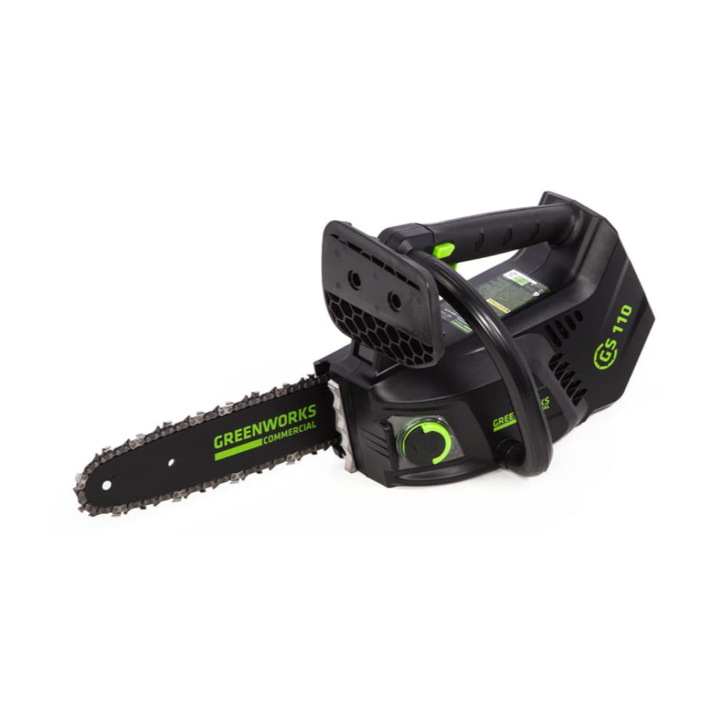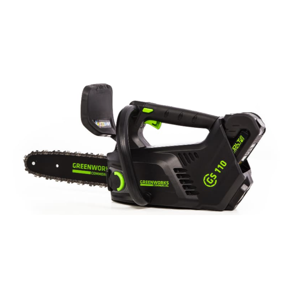 Пила цепная одноручная аккумуляторная Greenworks 2003807 40V 254 см бесщеточная без АКБ и ЗУ Пила цепная аккумуляторная G-MAX 40V GREENWORKS GD40TCS— компактный вспомогательный профессиональный инструмент, который подходит как для бытового использования, так и для коммерческой каждодневной эксплуатации. Вес (без батарей) — 2,35 кг, а длина шины — 25 см, что позволяет управляться с ней даже одной рукой! Поэтому эта пила незаменима при ведении вспомогательных работ — подрезке небольших садовых деревьев и спила тонких сухих деревьев. За счет точной работы цепи со скоростью 20 м/с, эта небольшая пила идеально подходит для фигурной резки по дереву и изготовлению скульптур. А за счет компактных размеров пила понравится охотникам и рыболовам для обустройства лагеря, приготовления костра и расчистки тропинок и дорог от завала. Характеристики этой небольшой коммерческой пилы в сопоставимы с серьезными цепными бензопилами. Ее надежный бесщеточный двигатель DigiPro сопоставим по мощности с бензиновыми аналогами на 1,2-1,5 л/сил. При этом электродвигатель пилы GreenWorks полностью экологичен, имеет высокий крутящий момент и пилит быстрее бензинового аналога, имеет низкий уровень шума и вибраций, а так же прост в эксплуатации потому, что не требует подготовки масло-бензиновой смеси и серьезного обслуживания. Включение пилы производится одной кнопкой. Шина и цепь пилы произведены компанией Oregon. 25-сантиметровая шина сделана из кремнистой стали. Цепь имеет шаг 1/4 дюйма. Для безопасности предусмотрен предохранитель включения и тормоз цепи. Для долговечной работы двигатель имеет защиту от перегрузки. Пила обладает долгим автономным временем работы — до 110 спилов от 4 А/час батареи. Питают инструмент аккумуляторные батареи G-MAX 40V, которые можно использовать с другими устройствами линейки 40V — более 15 устройств. Комплект поставки: Пила цепная аккумуляторная G-MAX 40V GD40TCS - 1 шт. Аккумулятор в комплект не входит Зарядное устройство в комплект не входит Цепь - 1 шт. Шина - 1 шт. Руководство по эксплуатации - 1 шт. Упаковка - 1 шт.