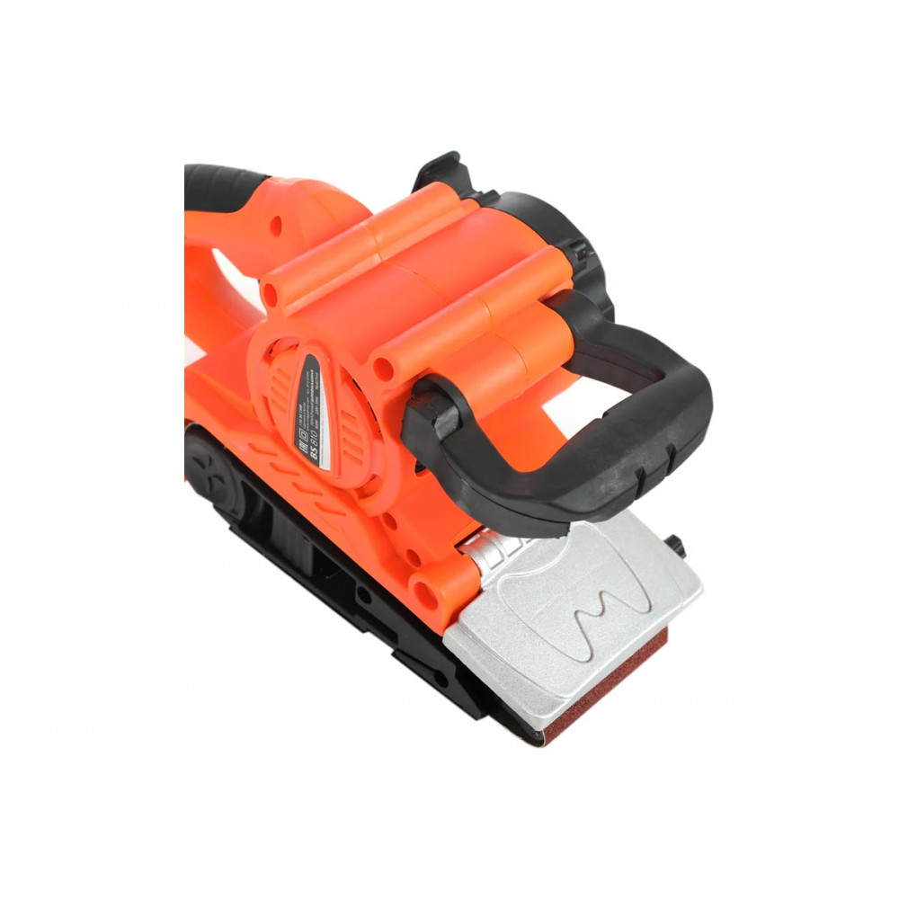 Ленточная шлифовальная машина PATRIOT BS 810 110301500 предназначена для быстрого съёма материала с обрабатываемой поверхности и подходит для работы с деревом и пластиком. Для оптимальной обработки предусмотрена электрическая регулировка скорости подачи шлифовальной ленты, а возможность подключения пылесоса позволяет поддерживать рабочее место в чистоте. Прорезиненные рукоятки обеспечивают надёжный хват и удобный контроль инструмента. Машина оснащена щеточным двигателем мощностью 810 Вт и работает от сети 220–240 В. Ширина ленты составляет 76 мм, длина — 457 мм, скорость движения ленты регулируется в диапазоне 200–380 м/мин. ЛШМ имеет рабочую поверхность 76×130 мм, длину кабеля 2 м и возможность подключения к пылесосу. Электрическая регулировка оборотов присутствует, но функции защиты от перегрева, плавного пуска и поддержания постоянных оборотов под нагрузкой не предусмотрены. Длина, ширина и высота устройства без упаковки составляют 253×160×165 мм, вес — 3,2 кг. Упаковка — коробка.