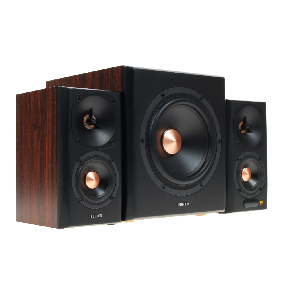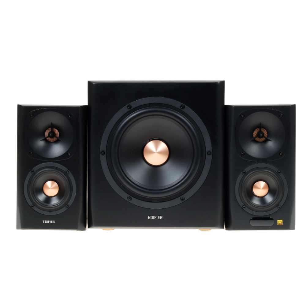 Что может быть лучше, чем после тяжелого трудового дня включить на полную громкость любимую музыку или запустить фильм? И насладиться мощными и ровными басами, глубоким и объемным звуком? Получить максимум удовольствия помогут вам колонки 2.1 Edifier S360DB, которые представляют собой колонки-сателлиты из дерева, черные, стильные, лаконично исполненные. Жесткий корпус уверенно нивелирует колебания и резонансы, магнитное экранирование динамиков гасит помехи от других электроприборов в доме, тип акустического оформления фазоинвертор обеспечивает широкий низкочастотный диапазон. Все это вкупе делает Edifier S360DB идеальным вариантом для аудиофилов и поклонников хорошего звука. Мощность колонок - по 40 Вт каждая, мощность активного сабвуфера – 70 Вт.