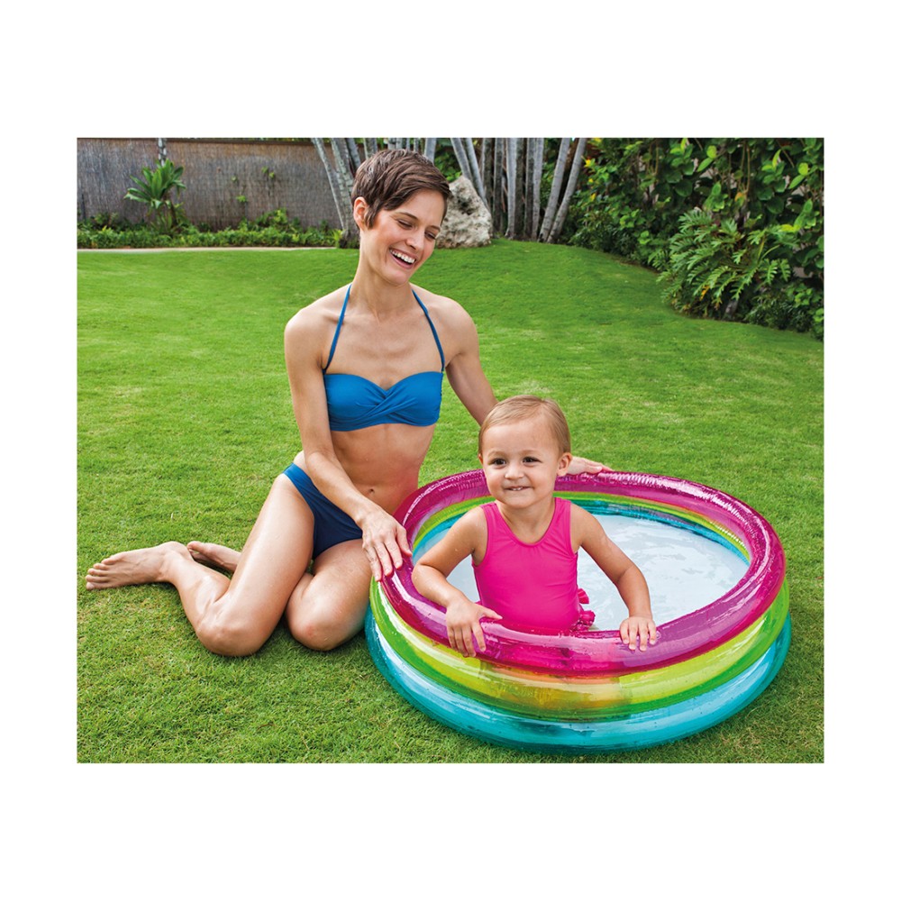 Небольшой детский надувной бассейн прекрасно подойдет для купания вашего малыша. Яркая расцветка бассейна непременно понравится как девочке, так и мальчику. Чтобы малыш проводил время в бассейне с удовольствием, можно добавить пару небольших надувных игрушек. Такой бассейн можно установить на лужайке перед домом, чтобы ребенок мог играть, купаться и быть под вашим наблюдением. Материал бассейна высококачественный винил. Бассейн предназначен для детей от 1 до 3 лет.