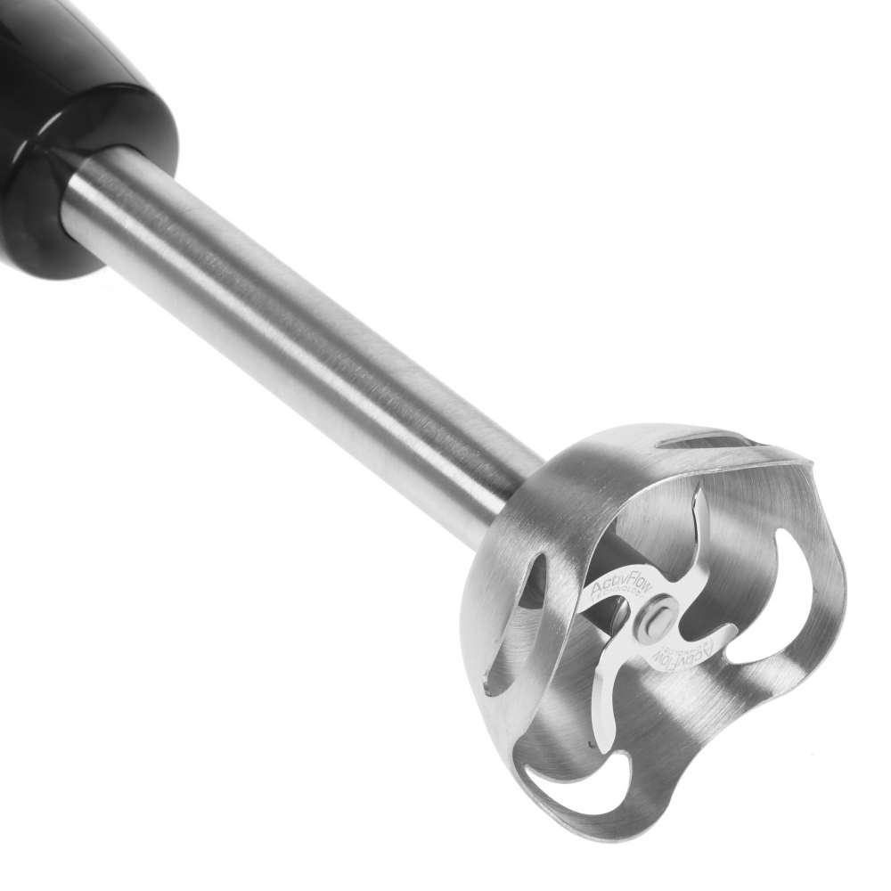 Прибор Moulinex DD833810 обладает 16-ю скоростями с функцией плавной регулировки, а также дополняется эффективным турборежимом. Мощность в 600 Вт позволяет быстро развивать нужную скорость для лучшего взбивания тех или иных продуктов. Устройство поставляется с мерным стаканчиком на 800 мл, небольшой чашей для измельчения, венчиком и насадкой-блендером.