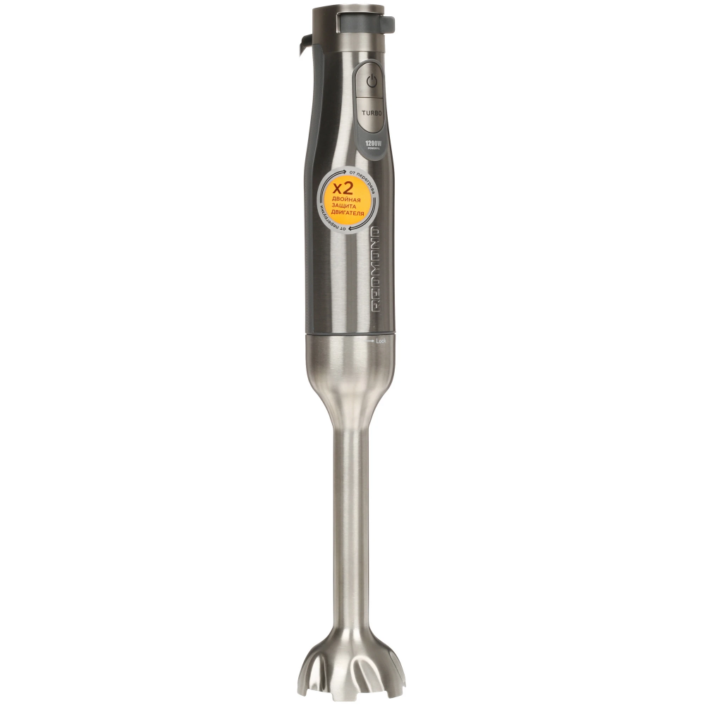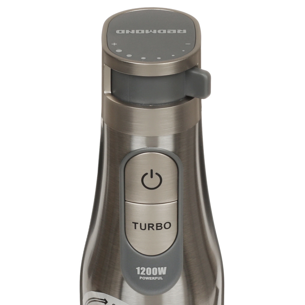 Блендер Redmond BH-401 мощностью 1800 Вт обладает кнопочной панелью управления, которая позволяет активировать турборежим и отрегулировать скорость. В комплекте содержится насадка для приготовления пюре и венчик для взбивания ингредиентов. Время непрерывной эксплуатации составляет 3 мин.