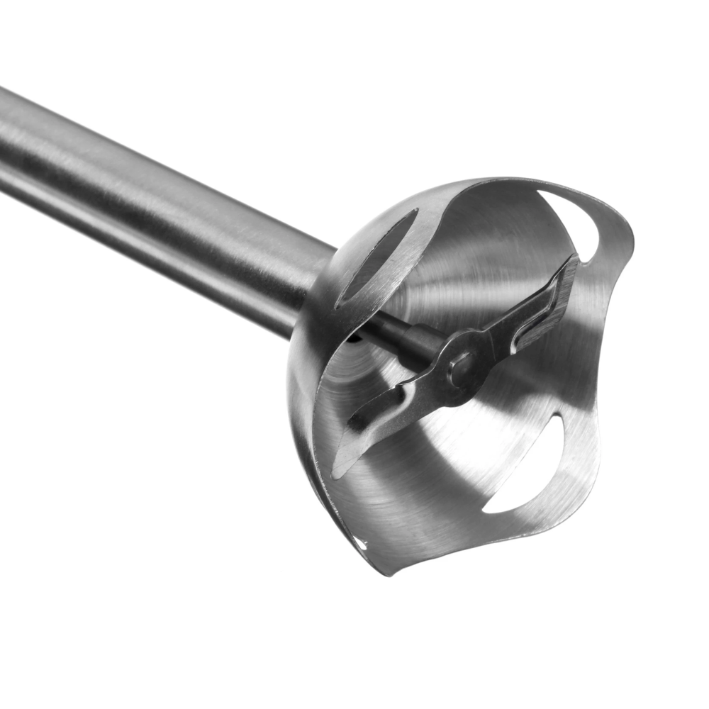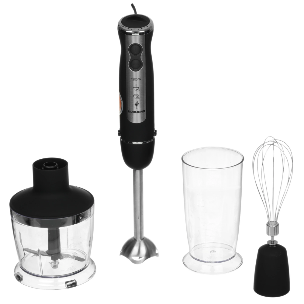 Блендер Redmond BH405 оснащен компактным измельчителем с чашей объемом 0.5 л, погружной насадкой, венчиком для взбивания и мерным стаканом вместимостью 0.6 л. Ножи из нержавеющей стали измельчают продукты и смешивают ингредиенты в однородную массу. Они устойчивы к деформации и коррозии. Поворотный механизм в верхней части предусматривает плавную регулировку скорости до 14300 об/мин.