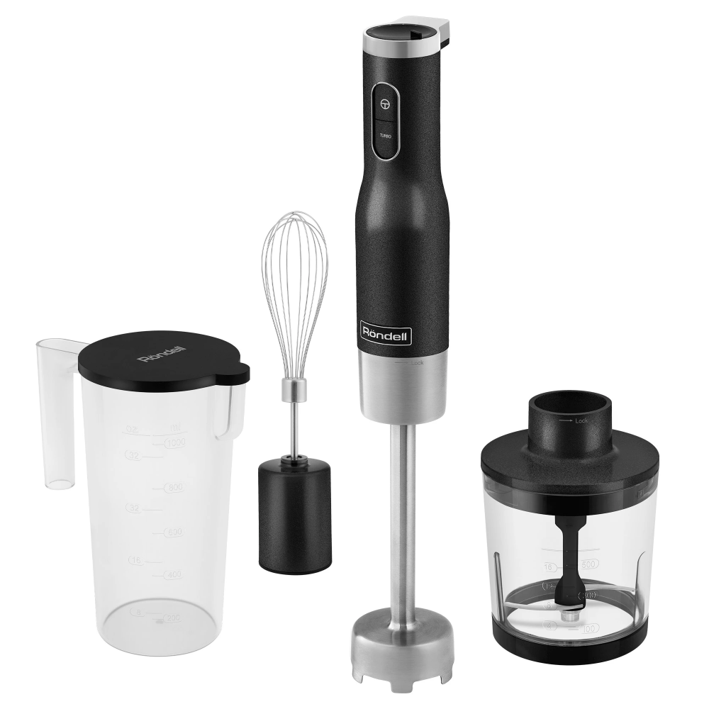 Блендерный набор RDE-1301 с максимальной мощностью 1200 Вт позволит вам готовить с удовольствием и добиваться впечатляющих кулинарных результатов. Благодаря DC-мотору прибор работает тихо: им можно пользоваться даже в утренние и вечерние часы. Рабочие лезвия с титановым покрытием и погружная часть блендера изготовлены из надежной нержавеющей стали, что гарантирует безупречную работу устройства на долгие годы. Прибор способен не только измельчать ингредиенты, но и взбивать кремы, муссы или коктейли – для этого в комплекте имеется специальная насадка-венчик. В устройстве предусмотрен режим TURBO — для самых твердых или плотных продуктов. Скорости переключаются плавно благодаря специальному регулятору. В набор входят рабочая чаша объемом 500 мл и стакан для смешивания объемом 1000 мл с крышкой. Корпус прибора имеет противоскользящее покрытие для комфортного использования.
