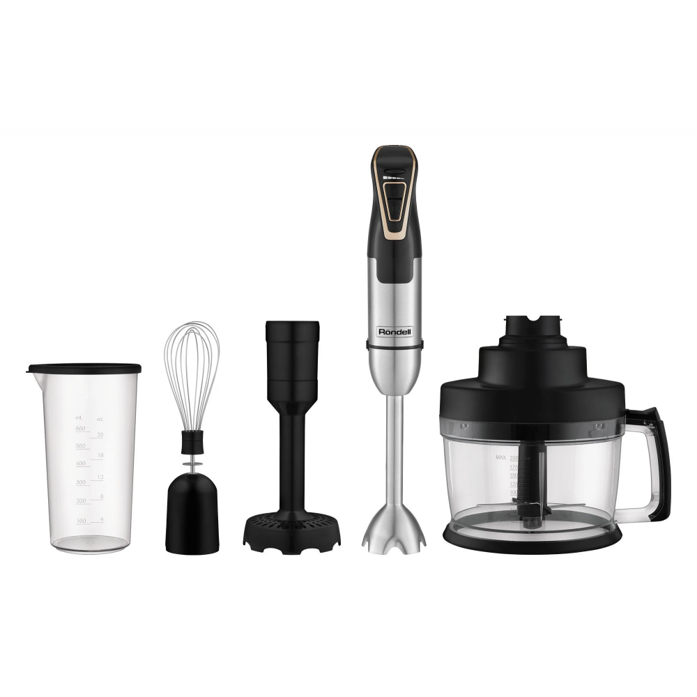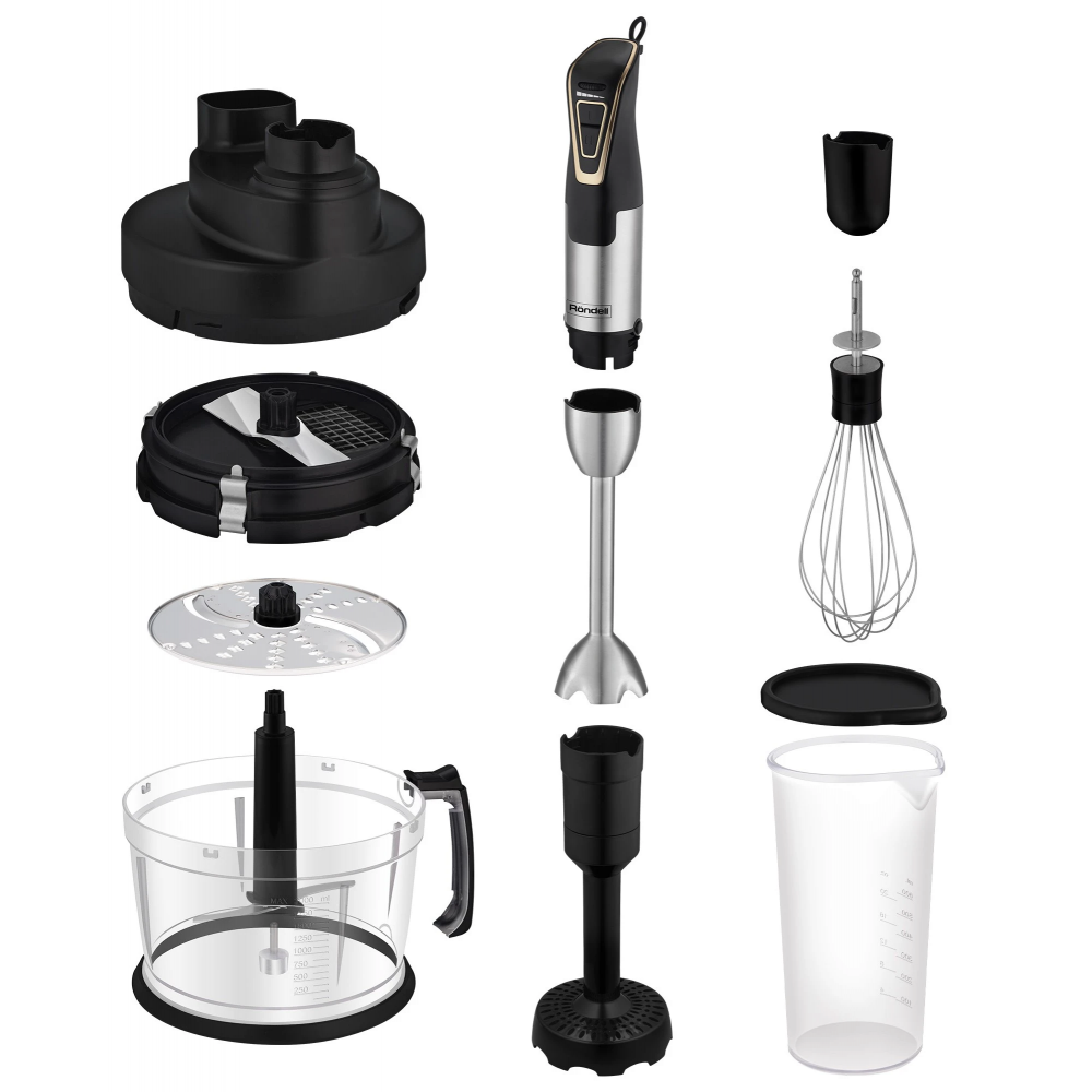 Многофункциональный блендерный набор оборудован погружной частью и лезвиями из нержавеющей стали, обеспечивающими эффективное и качественное измельчение любых ингредиентов, необходимых для вашего идеального блюда.