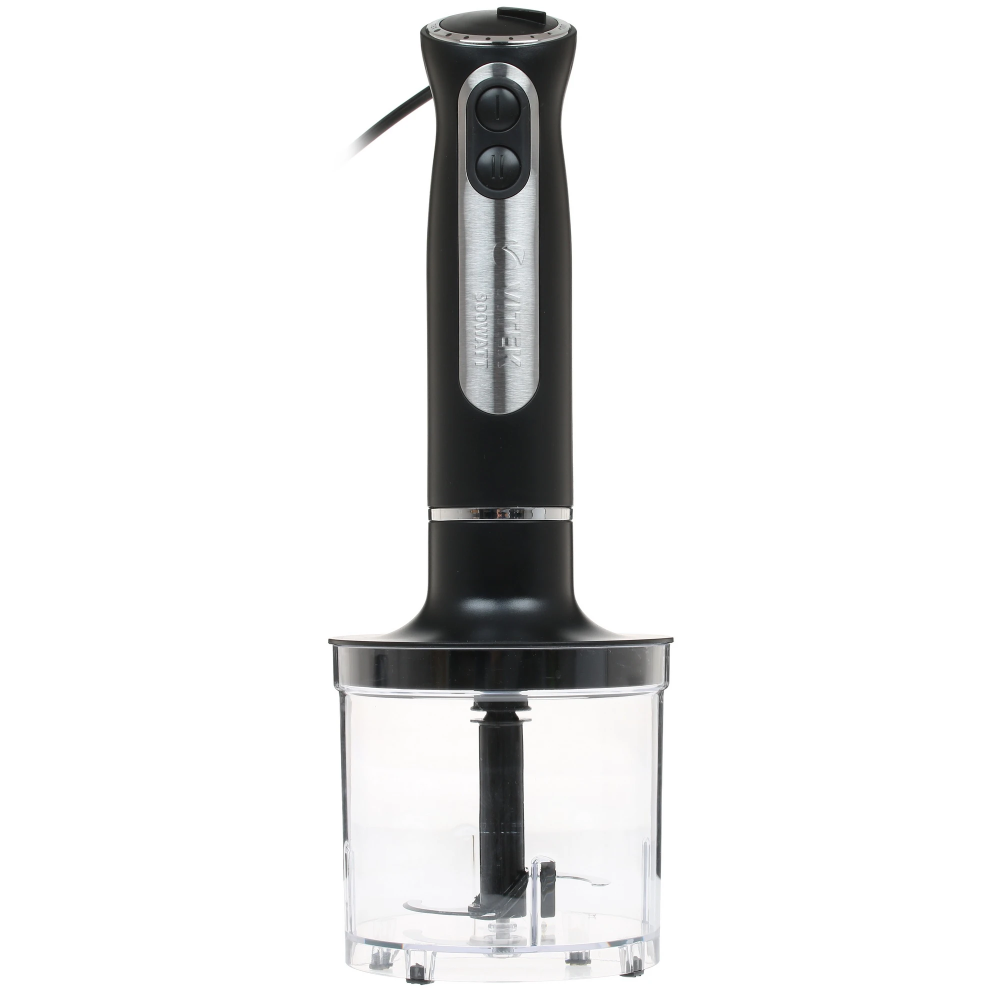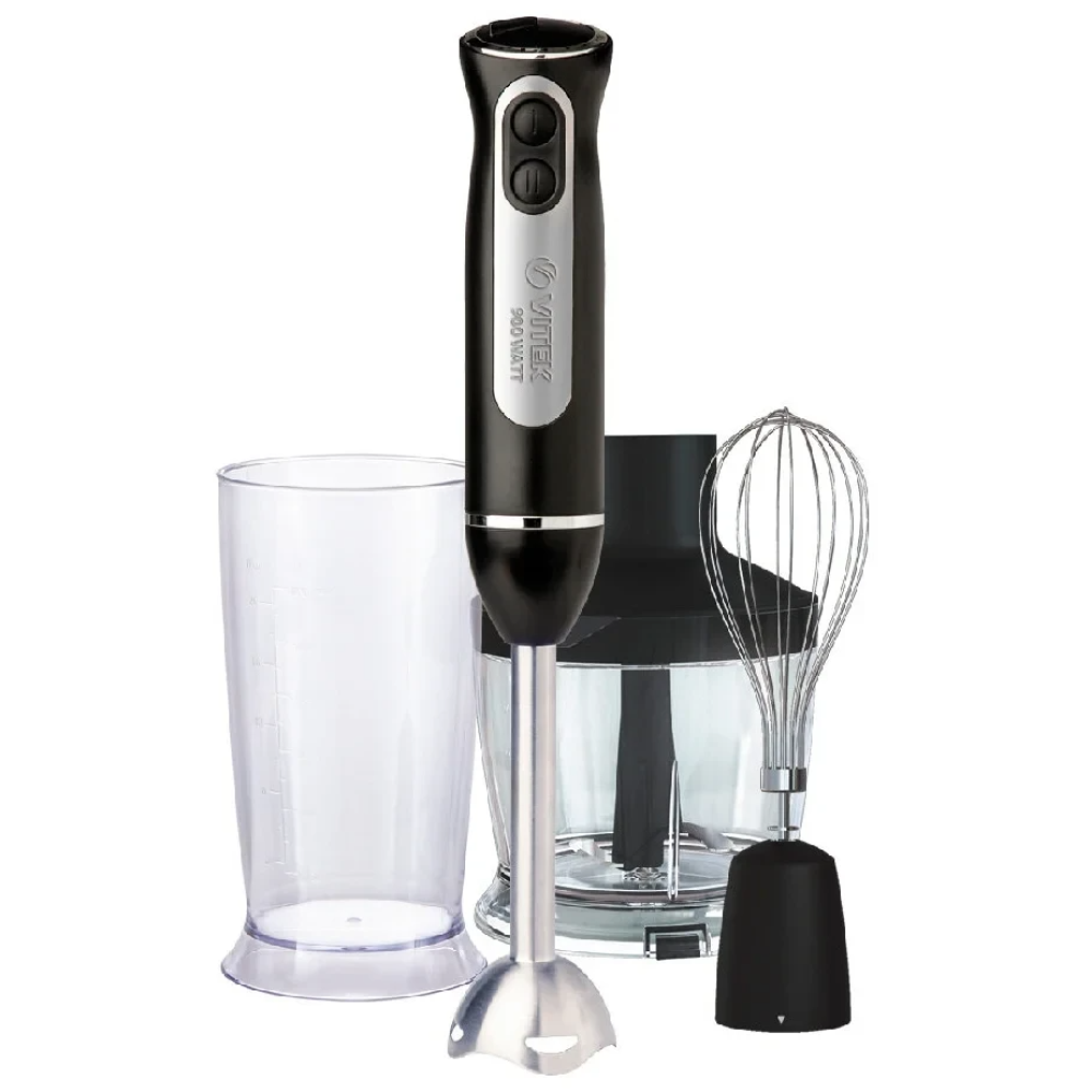 Блендер Vitek VT-8525 - это устройство, сочетающее в себе функционал сразу трех кухонных приборов: блендера, миксера и измельчителя. За счет своей компактной конструкции представленная модель с легкостью заменит упомянутую технику и освободит драгоценное пространство в шкафчиках вашего кухонного гарнитура. Для замешивания теста для блинов или оладий, а также для приготовления воздушного крема воспользуетесь насадкой-венчиком, которой укомплектован данный блендер. Если вам требуется превратить кусочки ингредиентов в однородно порубленную массу, вам на помощь придет насадка-измельчитель или мерный стакан на 0.7 л с невероятно острыми ножами.