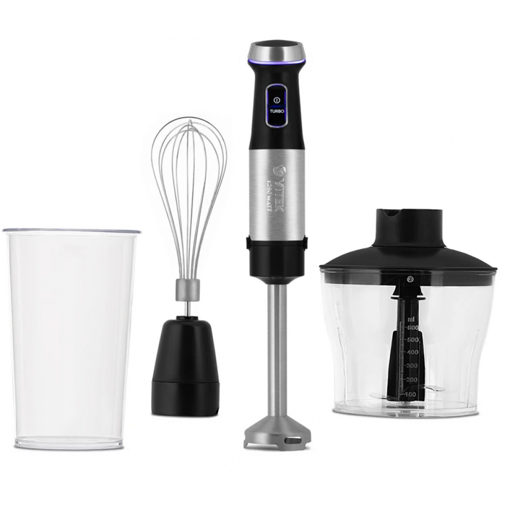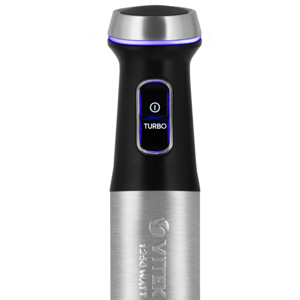 Для приготовления блюд, требующих измельчения или взбивания ингредиентов, воспользуйтесь погружным блендером VITEK VT-8538, снабженным чашей объемом 650 мл, венчиком и высоким стаканом объемом 800 мл. Прибор обладает отличной работоспособностью (максимальная мощность — 1250 Вт) и надежностью: его погружная часть и лезвия выполнены из высококачественной нержавеющей стали. Пользоваться блендером необыкновенно удобно и приятно, благодаря возможности плавной регулировки скорости и световому индикатору.