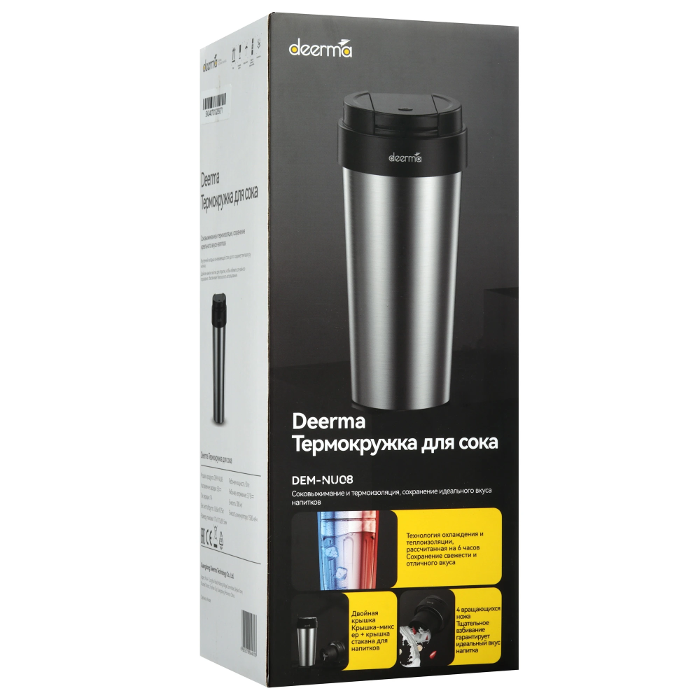 Портативный блендер Deerma DEM-NU08 черного цвета имеет мощность 50 Вт и одну скорость. Он подойдет для взбивания сока, коктейлей и смесей. Объем пластикового кувшина составляет 300 мл. Устройство заряжается от USB кабеля.