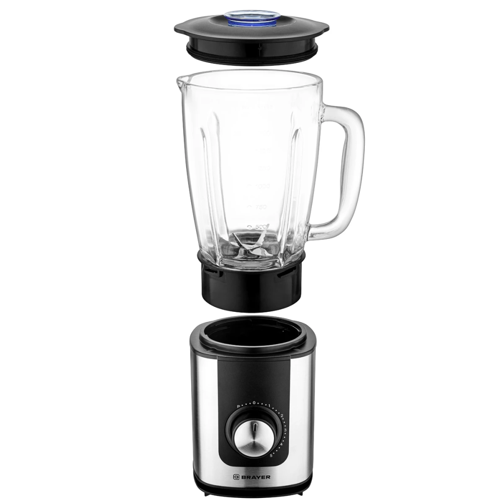 Блендер BRAYER 1204BR - это блендер и измельчитель. Благодаря надёжному двигателю мощностью 1200 Вт, прибор справится со смешиванием коктейлей, взбиванием, измельчением, дроблением, с приготовлением фарша и колкой льда. Блендер оснащён чашей объёмом 1,75 л. В крышке есть отверстие, закрываемое мерным стаканом, для добавления ингредиентов прямо во время работы. Также имеется защита от включения со снятой чашей.