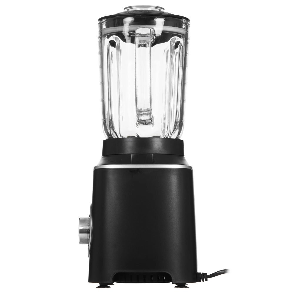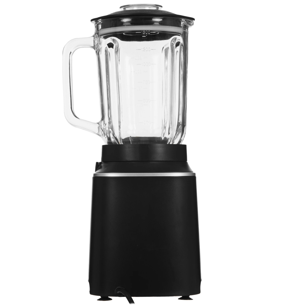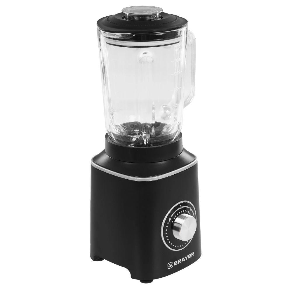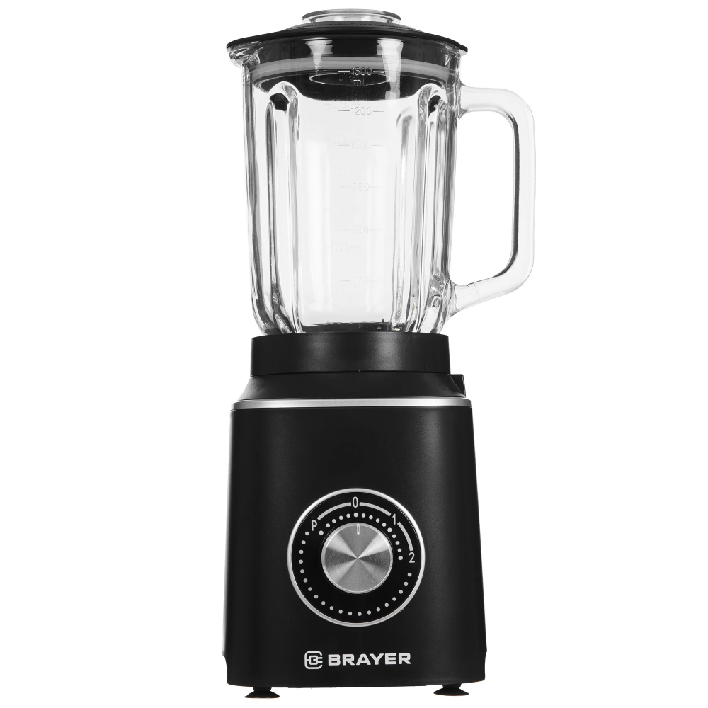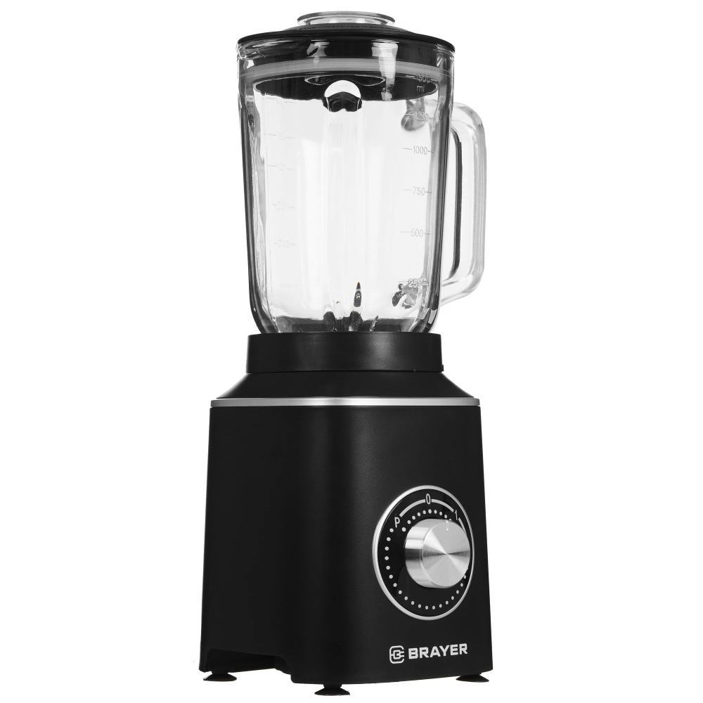 Блендер стационарный BRAYER BR1209 в черном пластиковом корпусе оснащен кувшином объемом 1.5 л из стекла. Мощность прибора составляет 1000 Вт при возможности непрерывно функционировать до 3 мин непрерывно. Этого достаточно для смешивания жидких ингредиентов и измельчения продуктов средней плотности. Нож из нержавеющей стали имеет 6 граней.