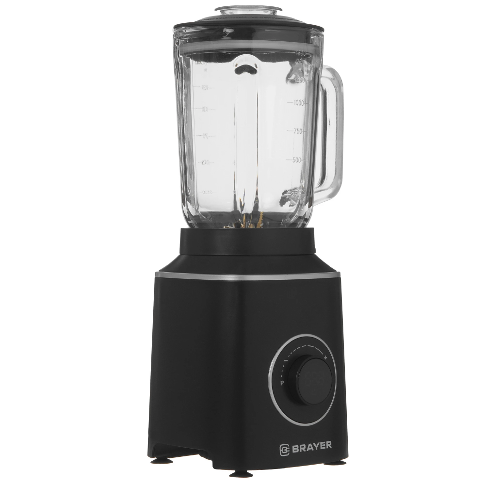Время непрерывной работы BRAYER BR1210 составляет 3 мин. Для безопасности у него есть система защитной блокировки. Благодаря нескользящим ножкам блендер устойчиво располагается на поверхности.