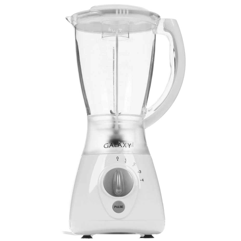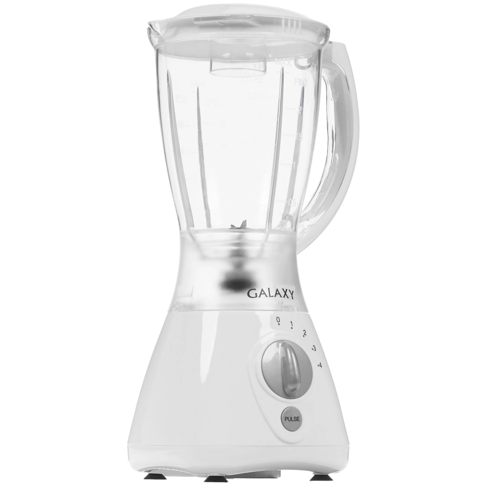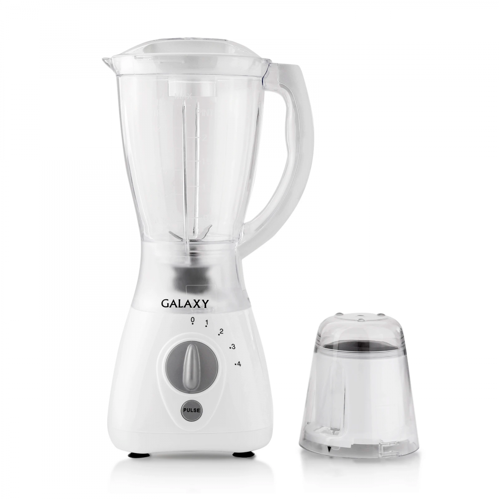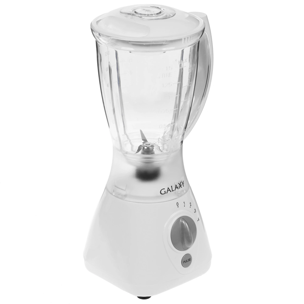 Блендер Galaxy GL 2154 представлен в элегантном пластиковом корпусе белого цвета с прозрачной пластиковой емкостью на 1500 мл. Оборудование действует при мощности 450 Вт и дополняется четырьмя рабочими скоростями. Отличному качеству работы и длительному сроку службы способствует наличие металлических острых ножей.