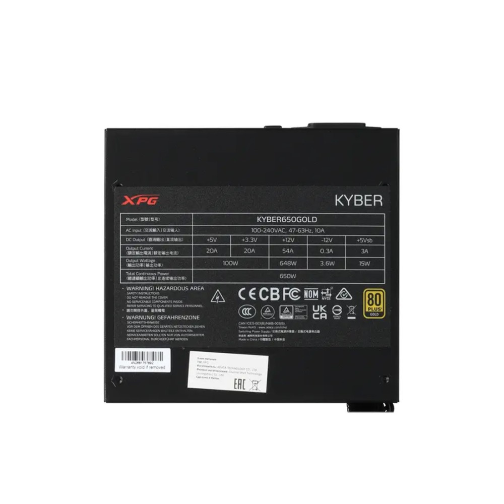 Блок питания ADATA XPG KYBER 650 обладает номинальной мощностью 650 Вт, которой хватит для обеспечения электроэнергией мощных компьютерных компонентов в игровой сборке. Модель представлена в форм-факторе ATX и оснащена проводами с защитной оплеткой. Для питания процессора используются разъемы 4+4 pin и 8 pin, а для подключения видеокарты предусмотрено два интерфейса 6+2 pin. Вентилятор с интеллектуальной кривой обеспечивает бесшумную работу со скоростью вращения до 2400 об/мин. В блоке питания ADATA XPG KYBER 650 предусмотрено 8 технологий защиты для безопасной и стабильной работы самого устройства и подключенных к нему комплектующих.