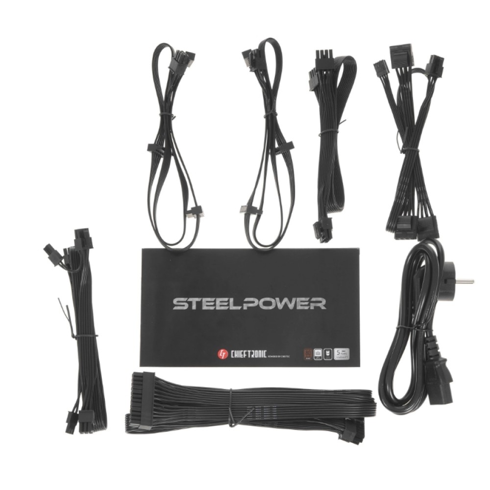 Серия SteelPower от Chieftronic несет с собой множество престижных особенностей и компонентов из серии PowerPlay в популярный рынок гейминга. Геймеры могут насладиться жестким регулированием напряжения и низкой пульсацией благодаря полумостовым LLC-преобразователям с технологией DC-DC, а также премиальным японским конденсаторами в сочетании с эффективностью 80PLUS Bronze и полностью модульной системой организации кабелей.
