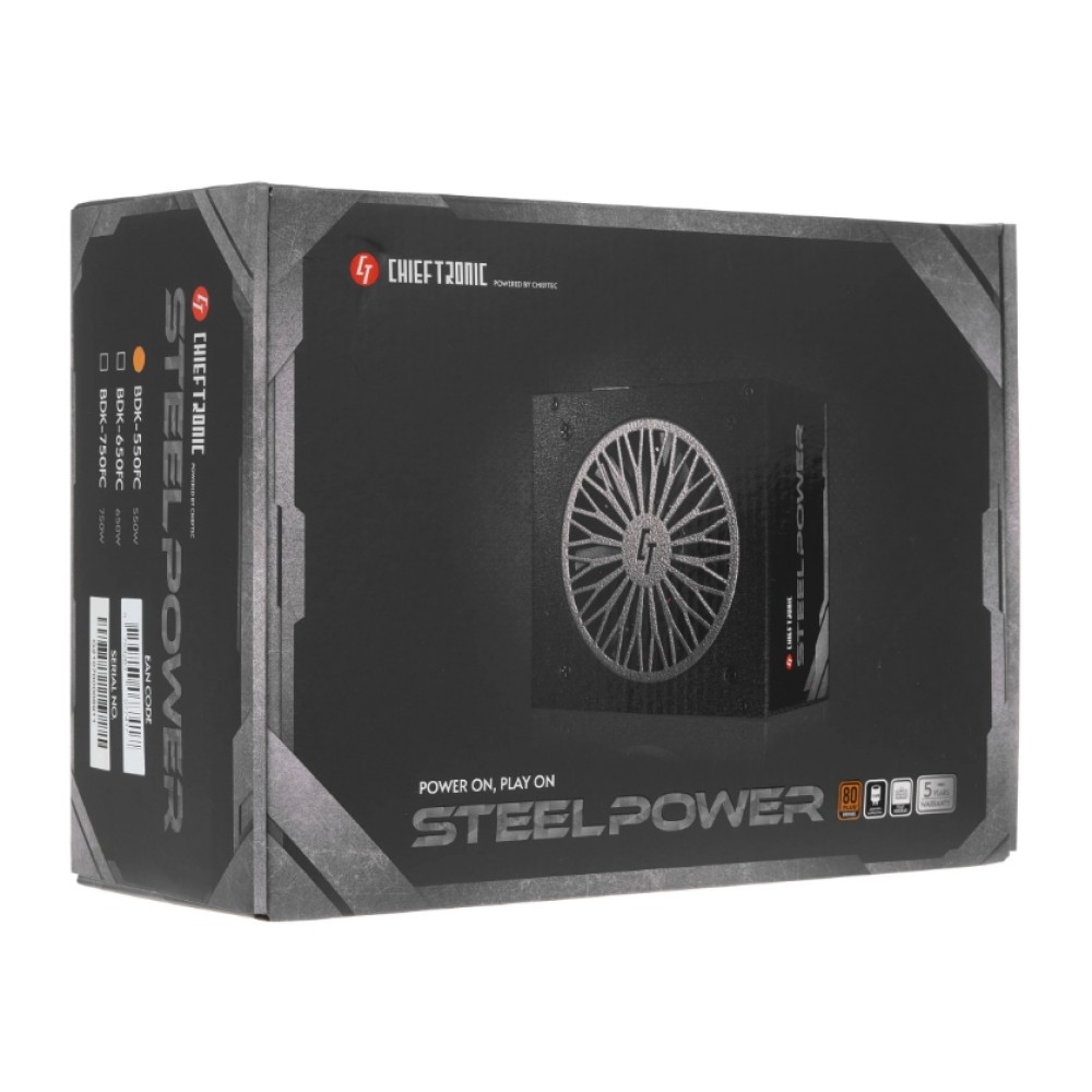 Серия SteelPower, представленная в вариантах мощностью 550 Вт, 650 Вт и 750 Вт, отличается высокой плотностью мощности, что позволяет уместить всё вышеперечисленное в компактном корпусе длиной 14 см с бесшумным 120-миллиметровым вентилятором FDB. Конструкция блока питания имеет прочный и сдержанный вид.