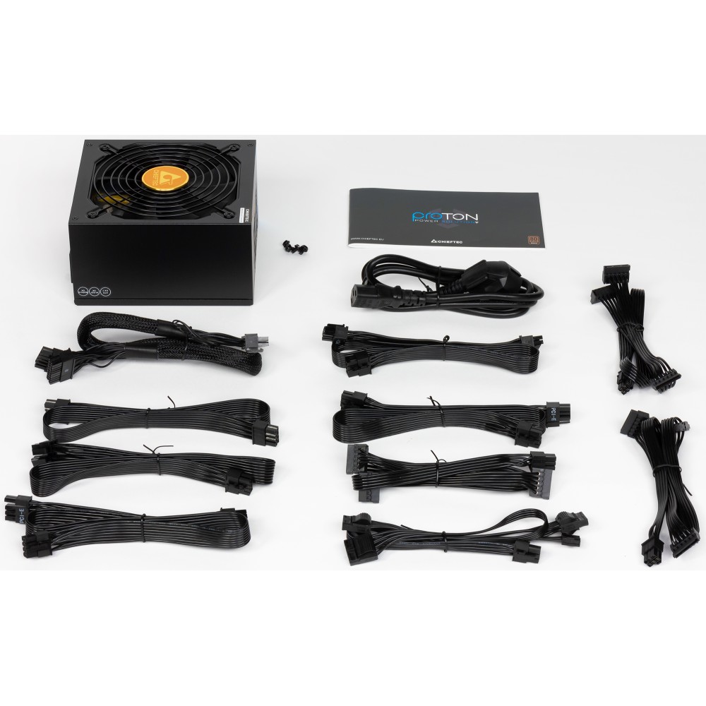 Блок питания CHIEFTEC Proton BDF-850C представлен в форм-факторе ATX 2.3, что делает его подходящим для стандартного корпуса системного блока. Он способен эффективно защищать подключенные к нему элементы ПК от короткого замыкания, скачков напряжения, от перегрева и перегрузки. Наличие активного корректора коэффициента мощности помогает максимально снизить потери электроэнергии. Так, номинальная мощность подключения составляет 850 Вт, а по 12-вольтной линии – 846 Вт. При этом входное напряжение может колебаться в пределах 115-230 В. Блок питания CHIEFTEC Proton BDF-850C имеет сертификацию 80 PLUS Bronze, что подразумевает его высокое качество и стабильную работу. Модульная система подключения кабелей позволяет избавиться от лишних проводов и освободить место в системном блоке. Основным разъемом питания выступает 20+4 pin. Также предусмотрен разъем для подключения процессора, несколько разъемом для видеокарт, SATA и Molex для накопителей. Активная система охлаждения в виде вентилятора помогает поддерживать оптимальную температуру, что положительно влияет на качество работы всех компонентов, подключенных к блоку.