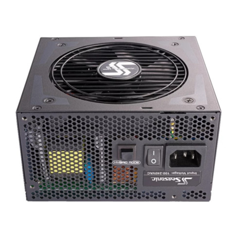 Вентилятор размером 120 мм предотвращает перегрев комплектующих. Гибридная система характеризуется низким уровнем шума и поддерживает высокую выходную мощность. Блок питания Seasonic Focus PX-75 оснащен гидродинамическим подшипником, что снижает образование тепла. Устройство соответствует сертификации 80+ Platinum, а мощность составляет 750 Вт.