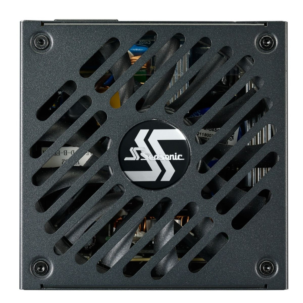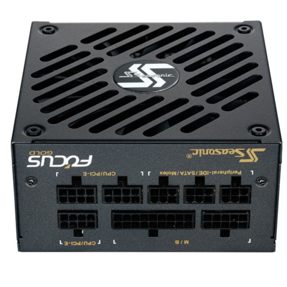 Блок питания Seasonic FOCUS SGX-500 [SSR-500SGX] черного цвета представлен в форм-факторе SFX, но может устанавливаться в корпус стандарта ATX благодаря наличию переходника. Номинальная мощность в 500 Вт предусматривает стабильное питание определенных узлов рабочего компьютера. Активная система корректировки коэффициента мощности сокращает разрыв между показателями полезной и полученной мощности, что снижает нагрев составляющих блока и улучшает его энергоэффективность. Данный показатель подтвержден сертификатом 80 PLUS Gold. Блок питания Seasonic FOCUS SGX-500 [SSR-500SGX] поддерживает модульное подключение проводов, при котором используются только нужные. Это позволяет избавиться от лишних кабелей и увеличить циркуляцию воздуха внутри блока. В качестве системы охлаждения предусмотрен вентилятор диаметром 120 мм. Его переключение из бесшумного режима в режим охлаждения обеспечивает трехфазный терморегулятор. Подключать блок питания к нужным компонентам ПК можно через имеющиеся на его корпусе разъемы (PCI-E, CPU, SATA, Molex).
