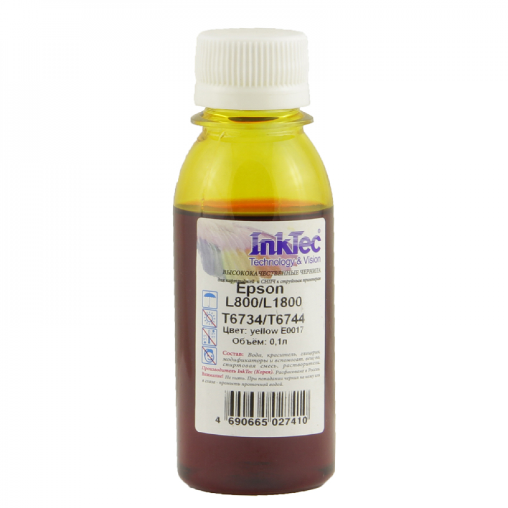Оригинальные чернила InkTec E0017 Yellow объёмом 0,1 л — высококачественный расходный материал для принтеров Epson L800 и L1800, совместимых с картриджами T6734 и T6744. Жёлтый компонент (Y) является частью цветового набора CMYK и обеспечивает яркие, чистые и насыщенные оттенки. Чернила InkTec гарантируют стабильную подачу, точную цветопередачу и не засоряют печатающую головку.