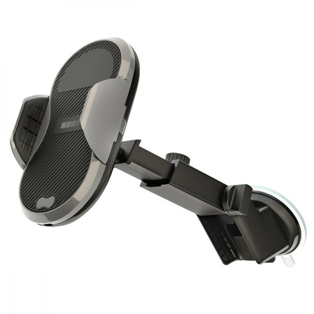 Универсальный держатель InterStep снабжён набором креплений для установки смартфона на приборной панели, лобовом стекле или вентиляционной решётке. В ОДНО ДВИЖЕНИЕ Просто поднесите смартфон – створки сами раскроются, а затем плотно сомкнутся, зафиксировав устройство. Снять девайс так же просто – оптический сенсор «увидит» руку и раскроет фиксаторы. ДВА В ОДНОМ Под мягкой панелью держателя расположено беспроводное зарядное устройство Qi. Оно совместимо с новейшими моделями iPhone, Samsung Galaxy и многими другими смартфонами. ЭРГОНОМИЧНАЯ КОНСТРУКЦИЯ Выбирайте оптимальное положение экрана, регулируя длину штанги и угол наклона. Вы также можете вращать мобильный девайс на 360 градусов