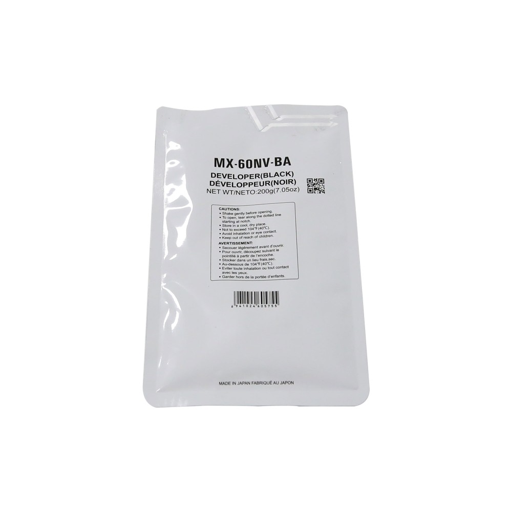 Используется в блоке проявки чёрного цвета для равномерного распределения тонера и формирования качественных отпечатков с высокой плотностью и чёткой детализацией текста и графики. Девелопер CET изготовлен с соблюдением магнитных и электрических характеристик оригинального MX-60NVBA, что обеспечивает стабильную работу узла проявки при больших объёмах печати.