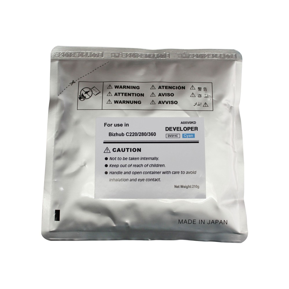 Девелопер CET CET8433 (Cyan) — совместимый расходный материал для цветных лазерных МФУ Konica Minolta Bizhub C220, C280 и C360, предназначенный для блока проявки голубого цвета (Cyan).