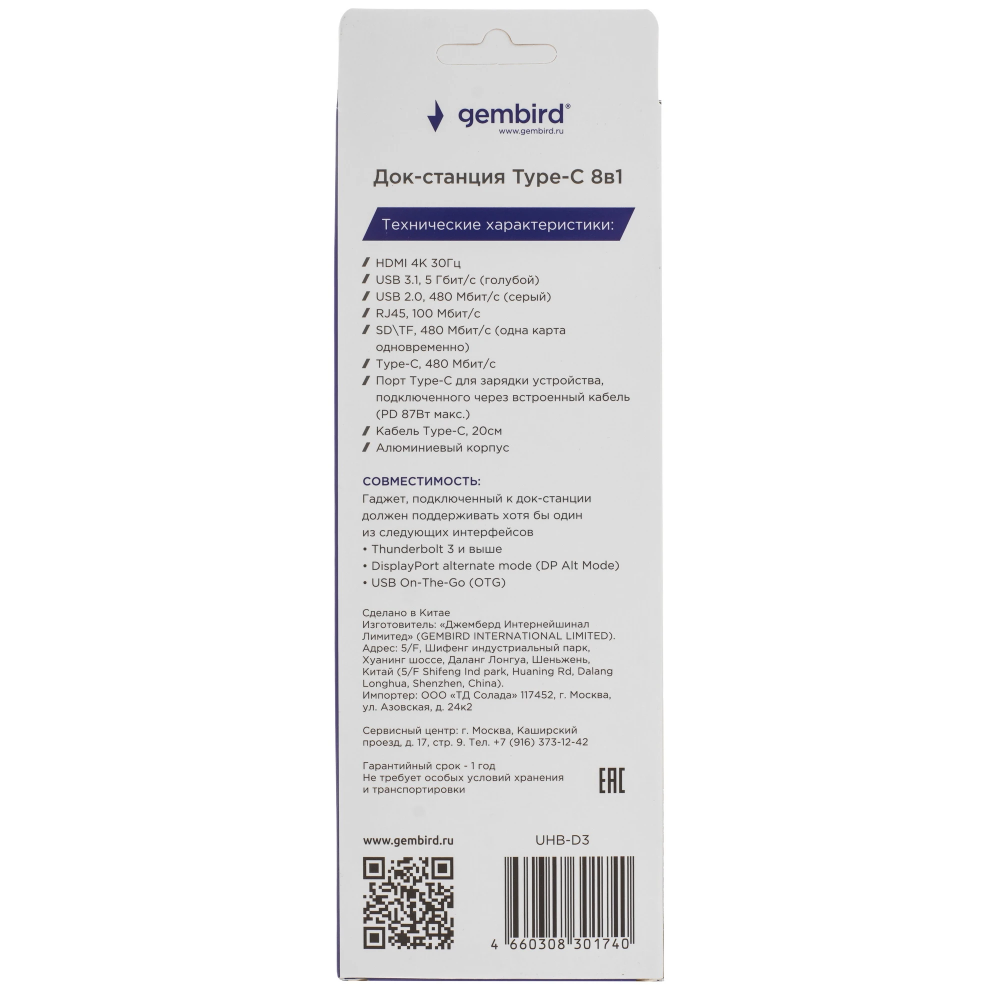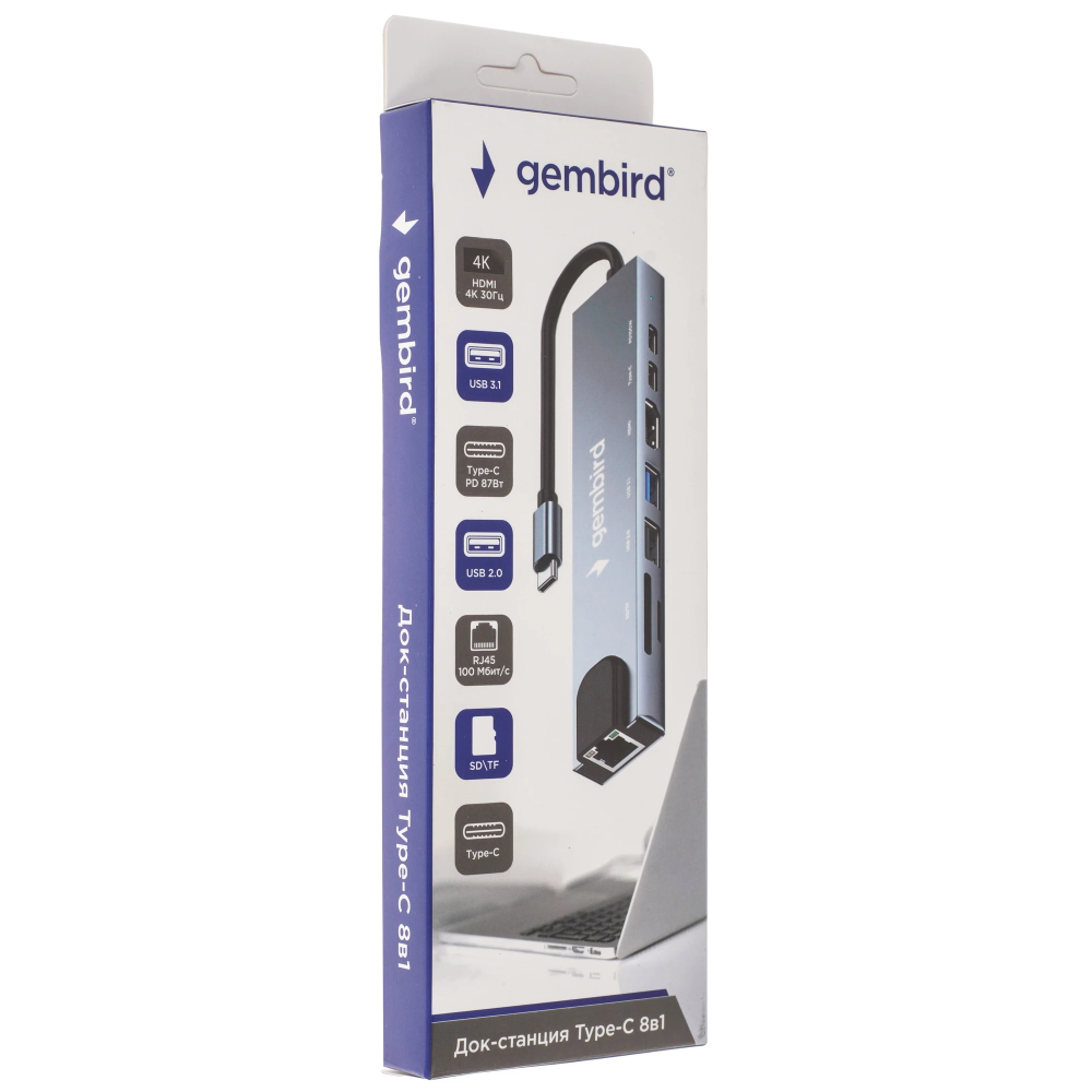 Док-станция Gembird UHB-D3 оснащена портом USB 2.0 со скоростью 480 Мбит/с и улучшенным интерфейсом USB 3.1 на 5 Гбит/с. Есть разъем HDMI с поддержкой цифрового видео в 4K-формате. Док-станция дополнена LAN-портом для сетевого подключения, портом для зарядки мобильных устройств. Есть кард-ридер для работы с внешними накопителями SD или microSD.