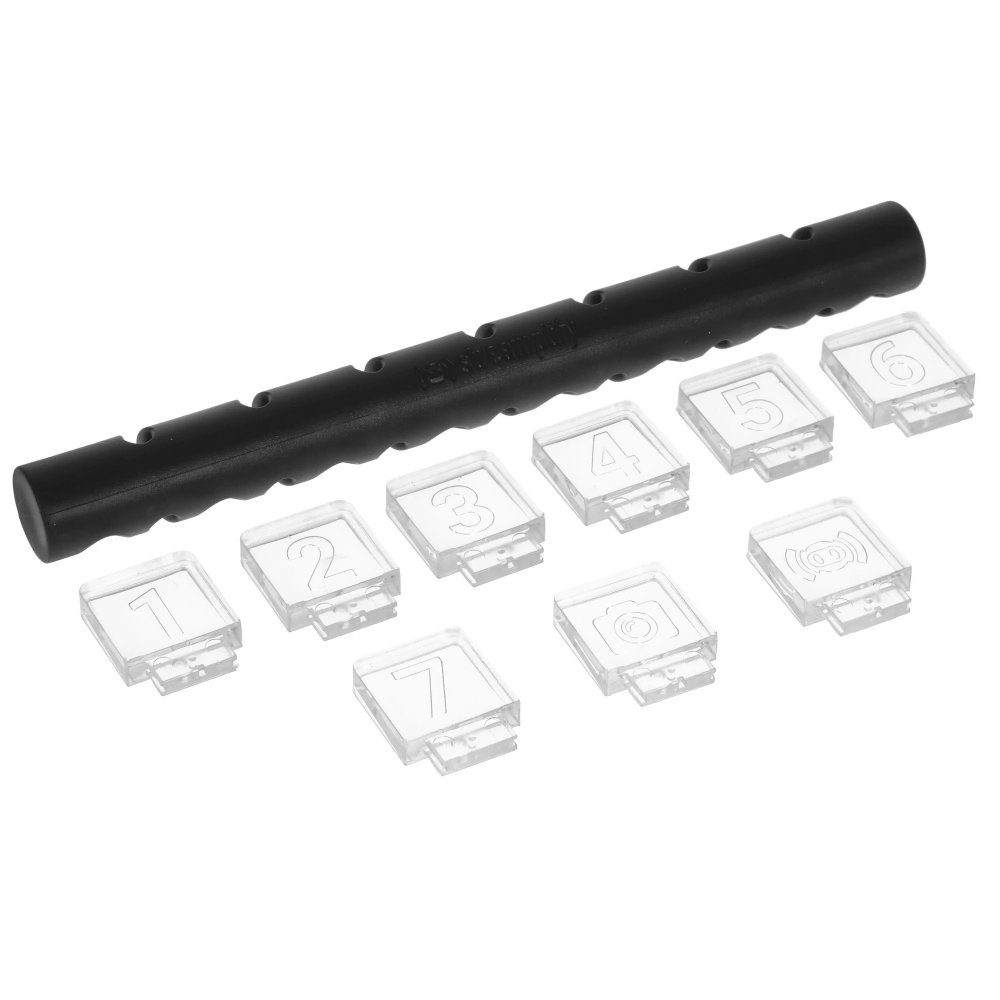 16 сменных значков, адаптер питания, держатель кабелей, документация, кабель USB