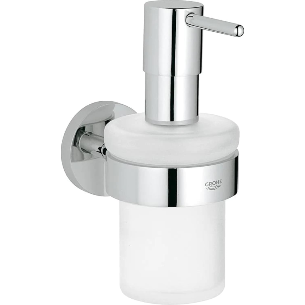 Настенный дозатор жидкого мыла. Дизайн в современном стиле, колба объёмом 160 мл из матового стекла, настенный держатель из хромированной латуни.